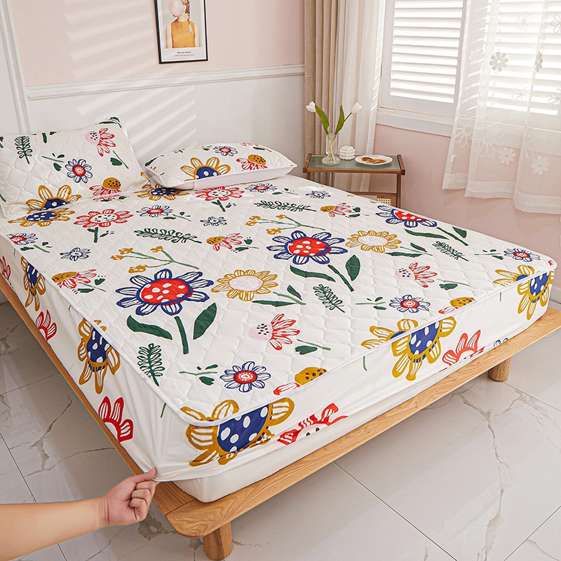 3 in 1 Canadian cotton Quilted bedsheet Queen/Single/King Size Full Garterized Bedsheet Set