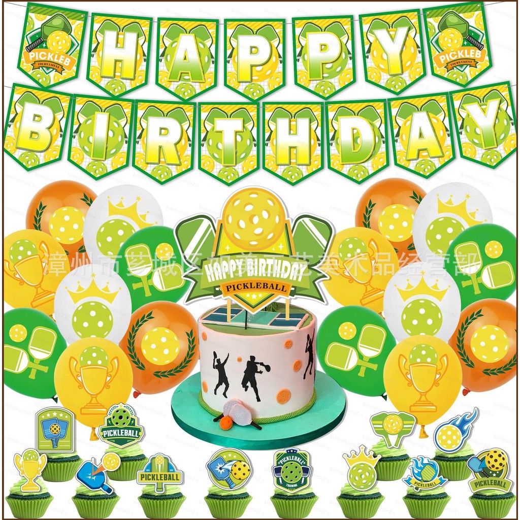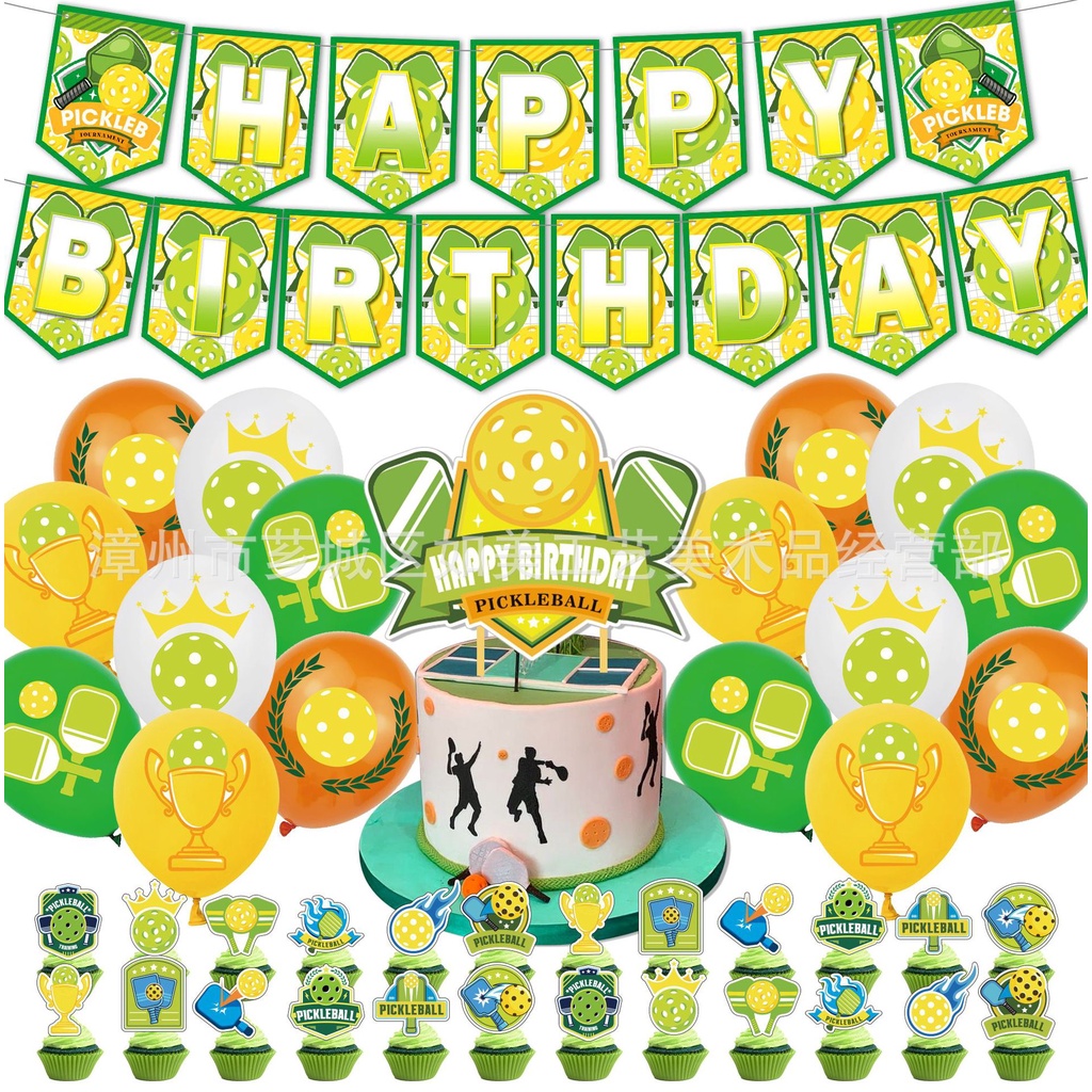 SQ2 Pickleball theme kids birthday party decorations banner cake topper balloons set supplies QS2