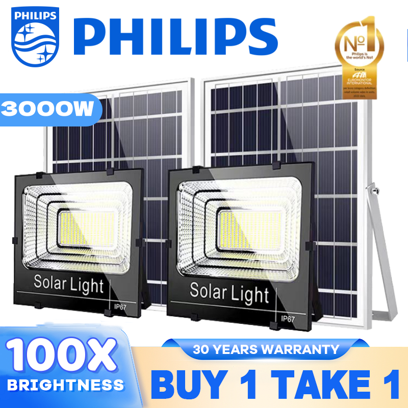 PHILIPS BUY 1 TAKE 1 3000W Solar Light IP67 Outdoor Waterproof Led Flood Street Lamp With Remote