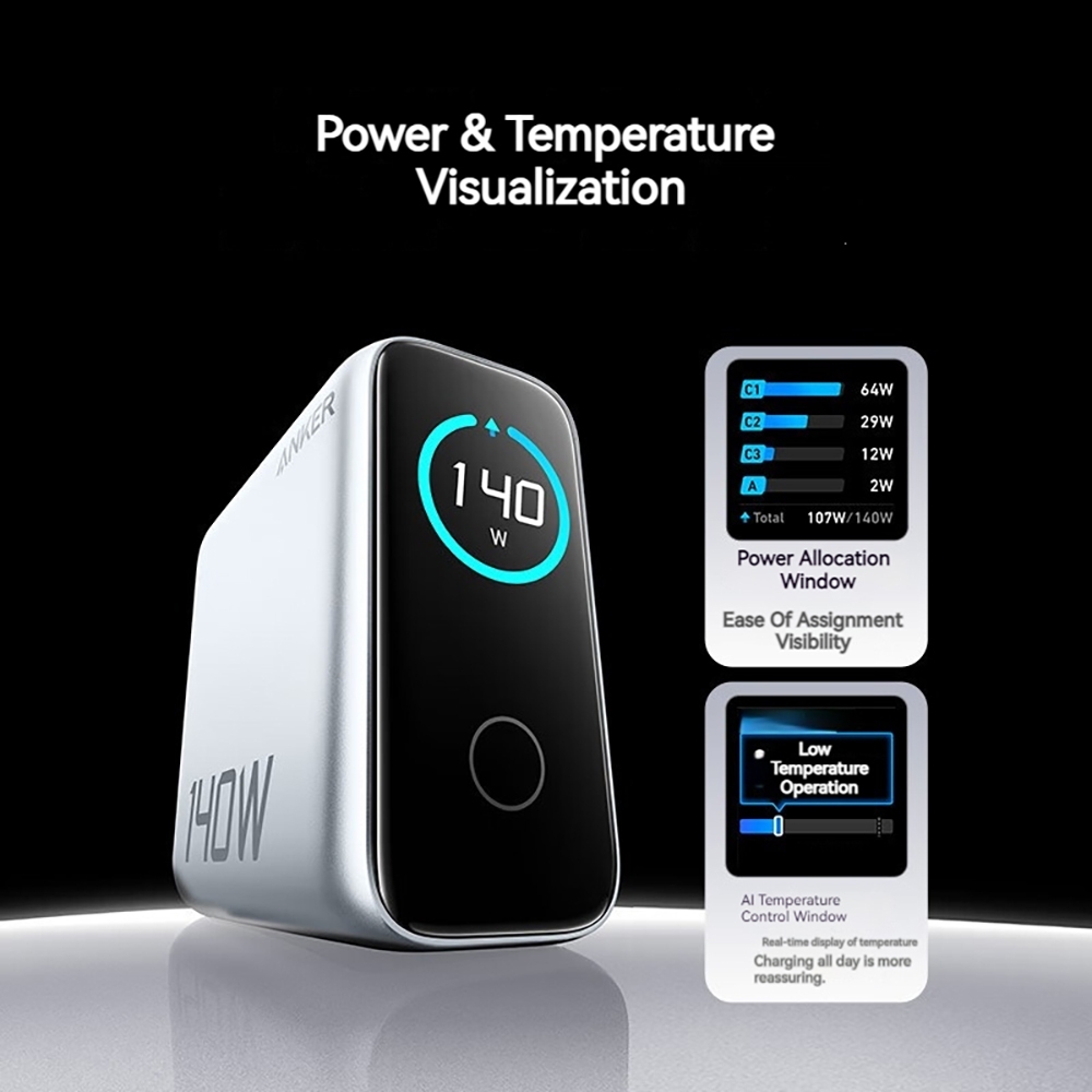 Anker GaN 140W Fast Charger with Screen Display Fast Charger First Ai Windows Charger
