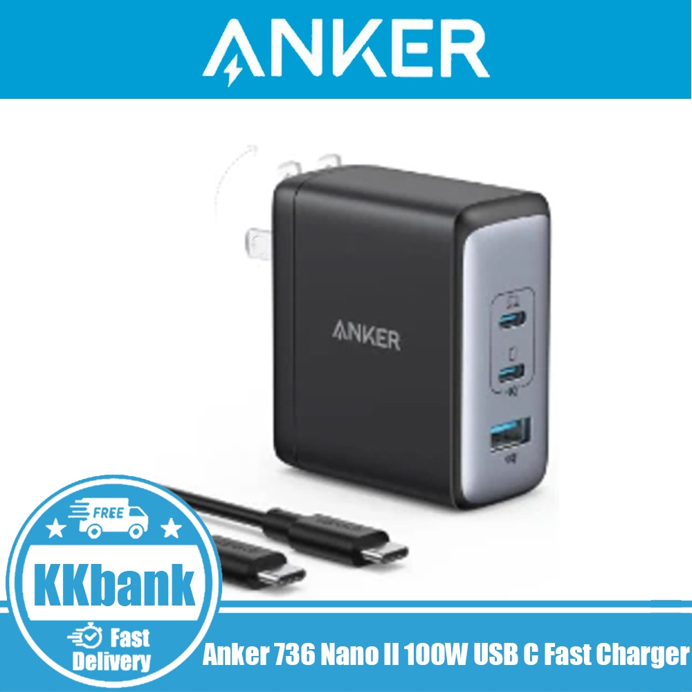 Anker 736 100W USB C Charger (Nano Il 100W), 3-Port Fast Compact Wall Charger