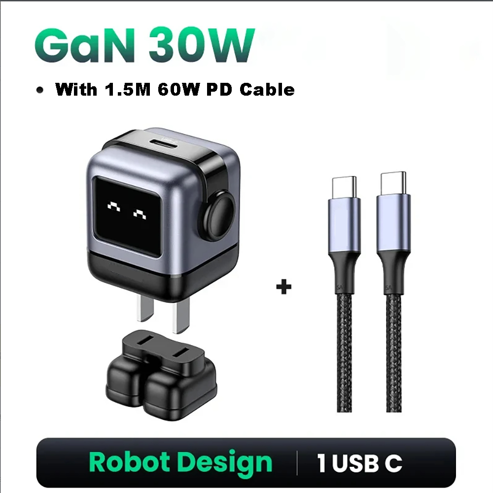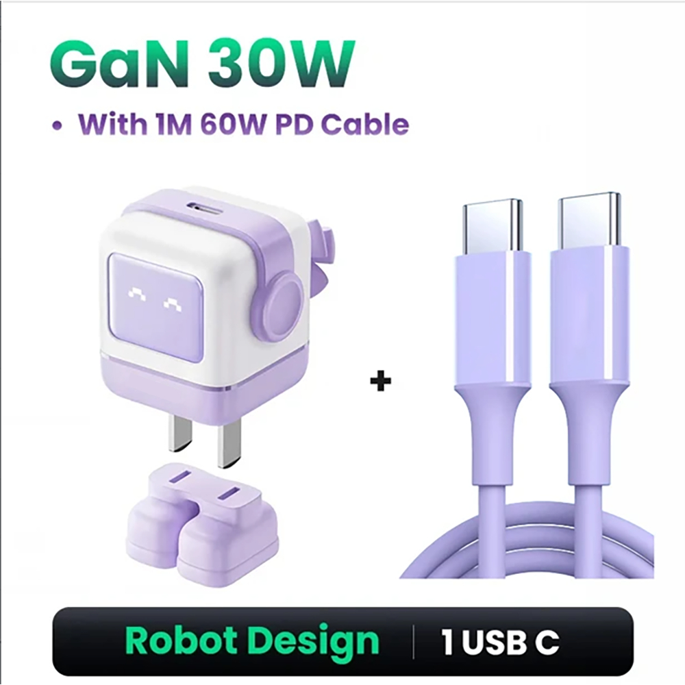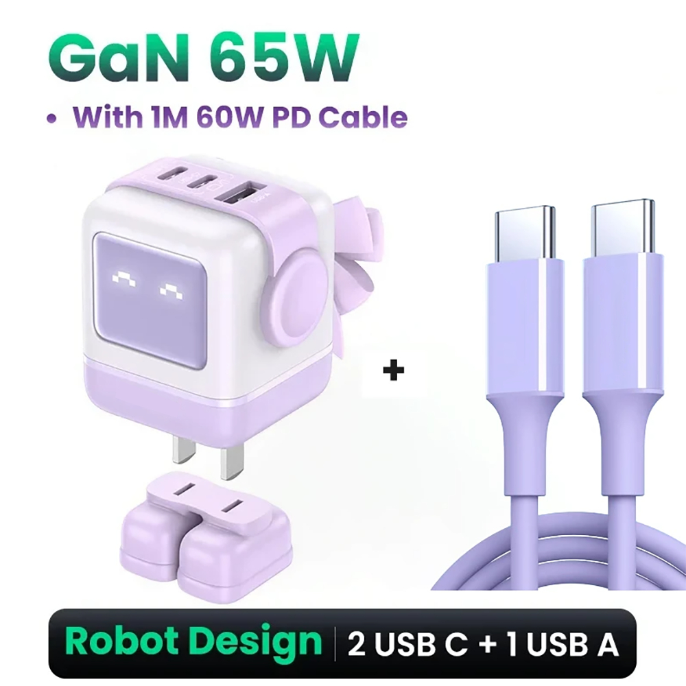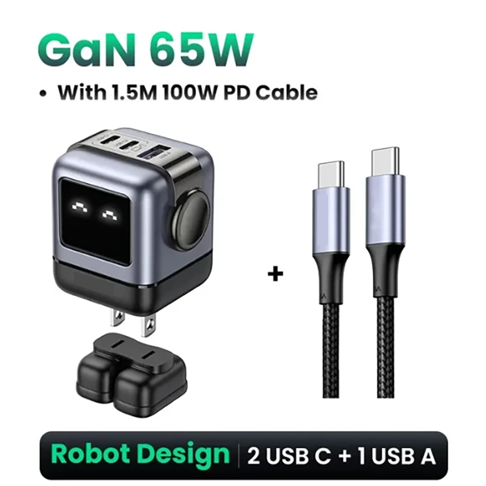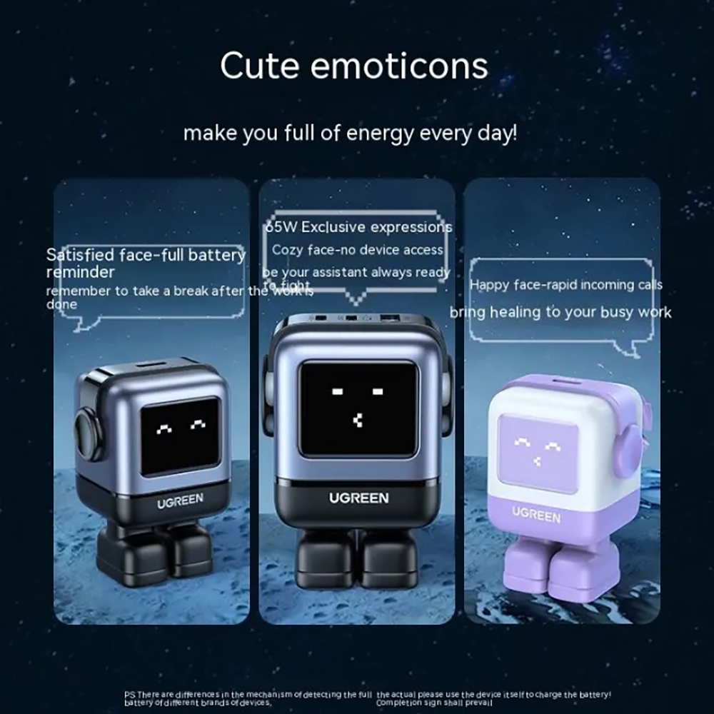 UGREEN RoboGaN 65W/30W USB C USB A Charger Mini Robot Nexode 3 Ports GaN Fast Charger