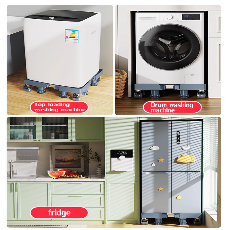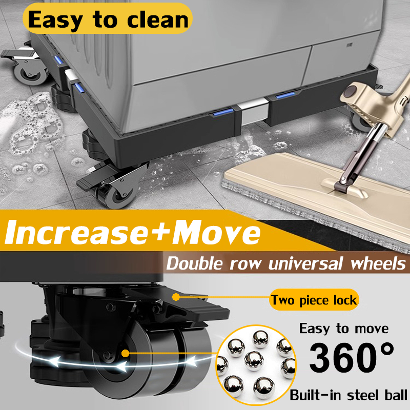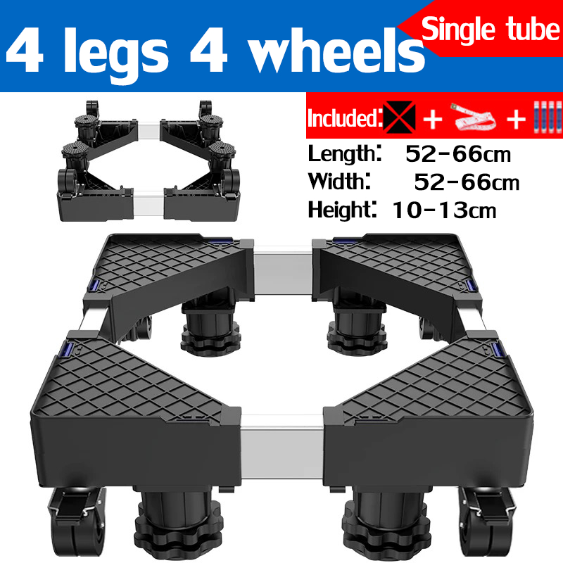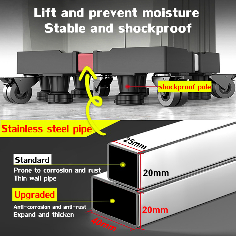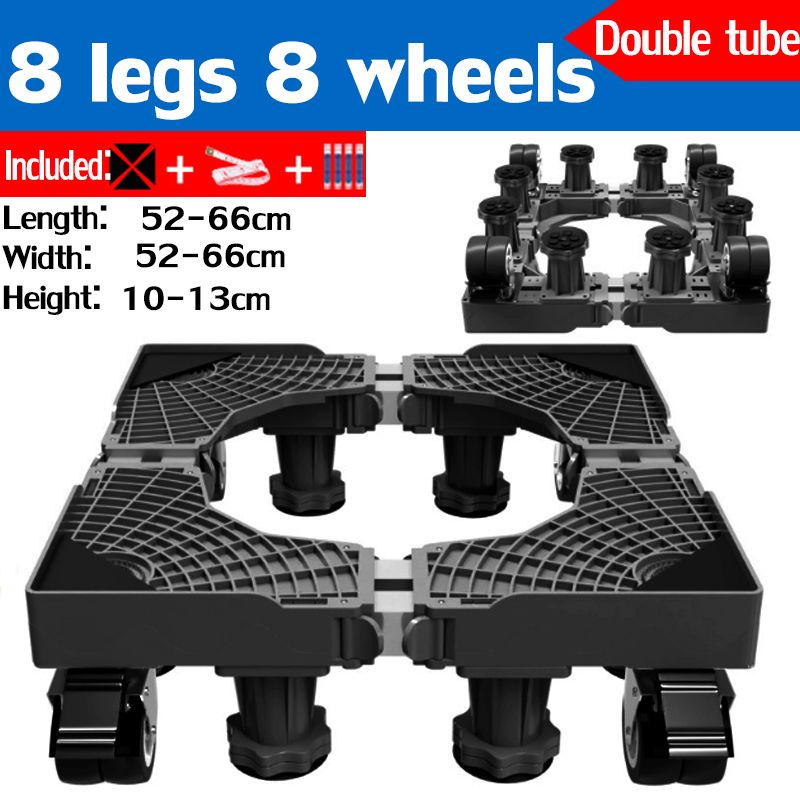 【Double 8 Tubes】Refrigerator Stand Washing machine Stand with wheels Stainless Steel Mobile Bearing Stand Adjustable Base Round Tube Type Brack
