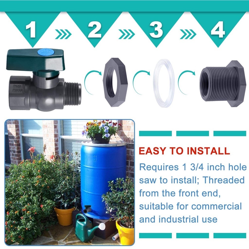 Rain Barrel Valve Long Lasting Simple Installation PVC 1in and3/4 inch Anti-cracking Spigot Kit