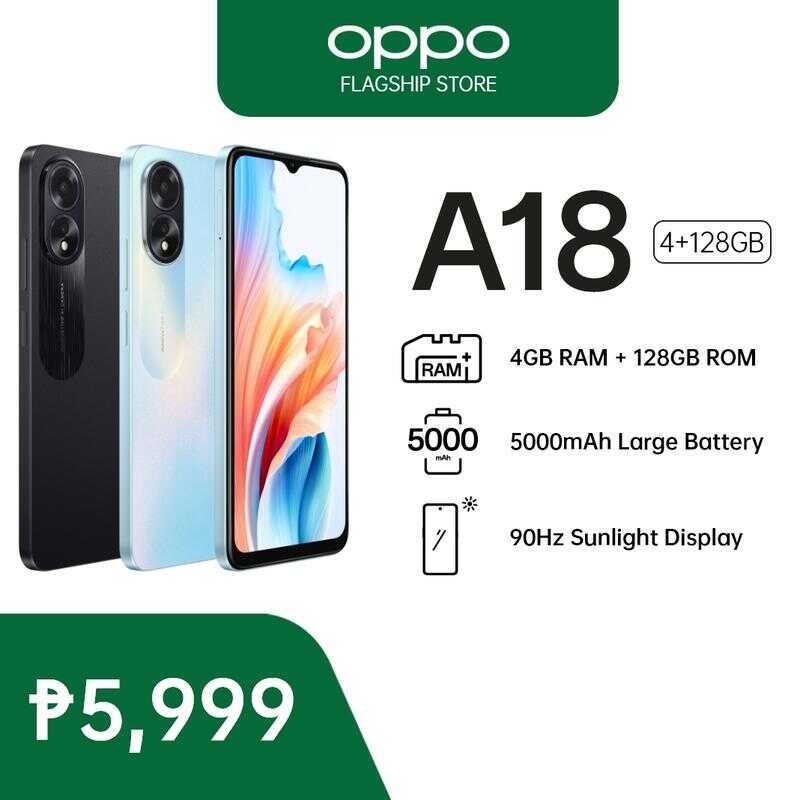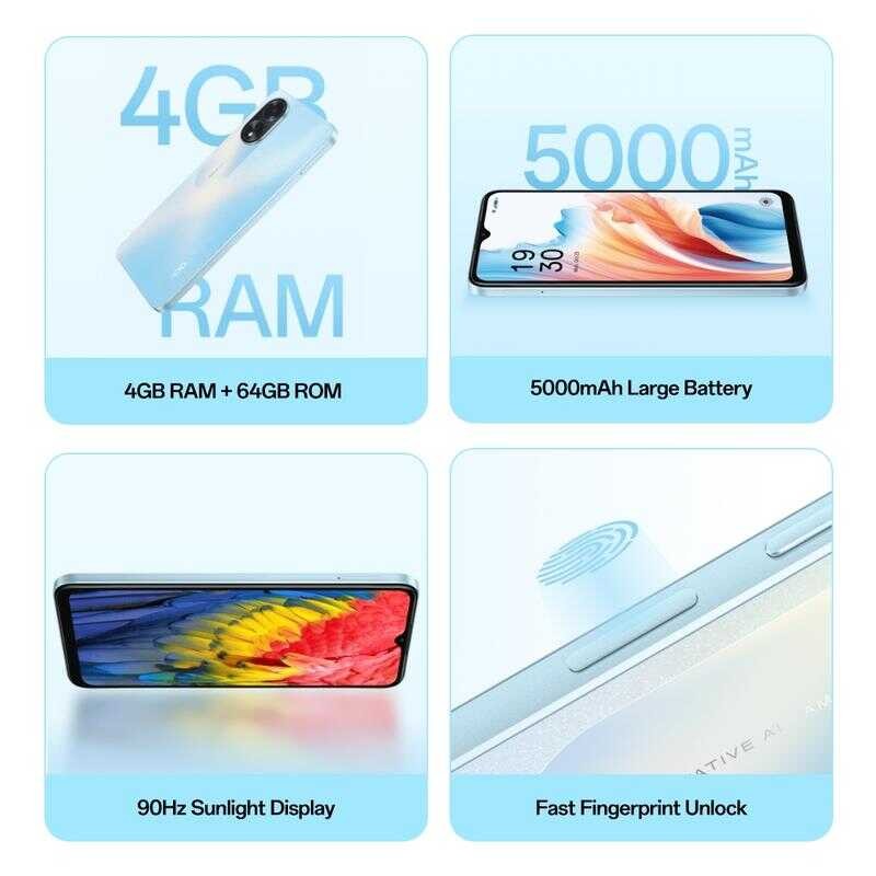 OPPO A18 Smartphone | 4Gb RAM + 64Gb/128Gb ROM Mobile | 5000Mah Large Battery Cellphone |