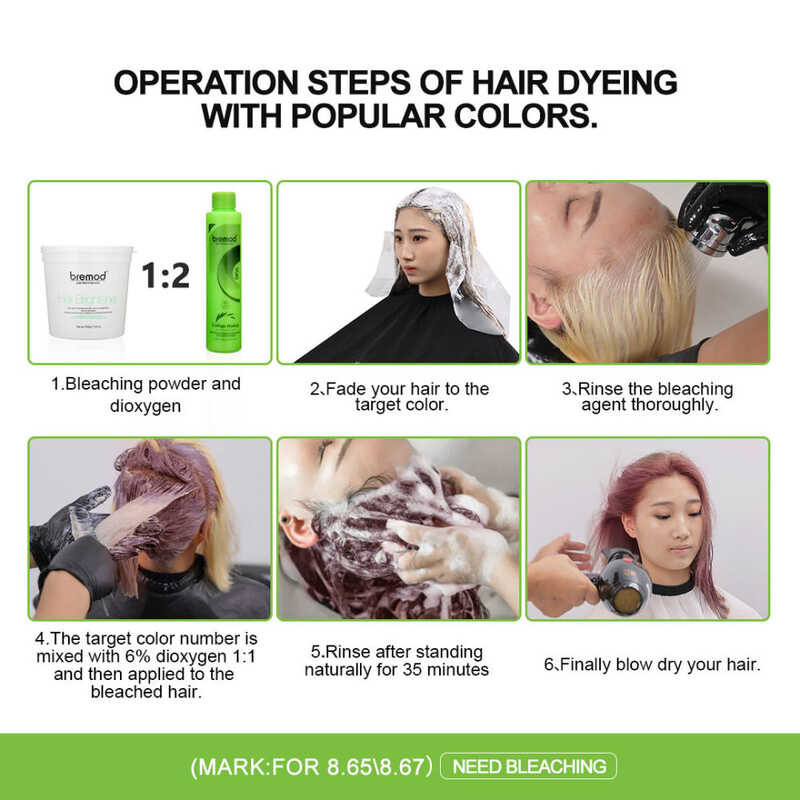 Bremod Dust 0.00 100Ml+Oxidizer 6% 9% 12% 100Ml Dye Stylish Color DIY Dye Hair Fading No Damage