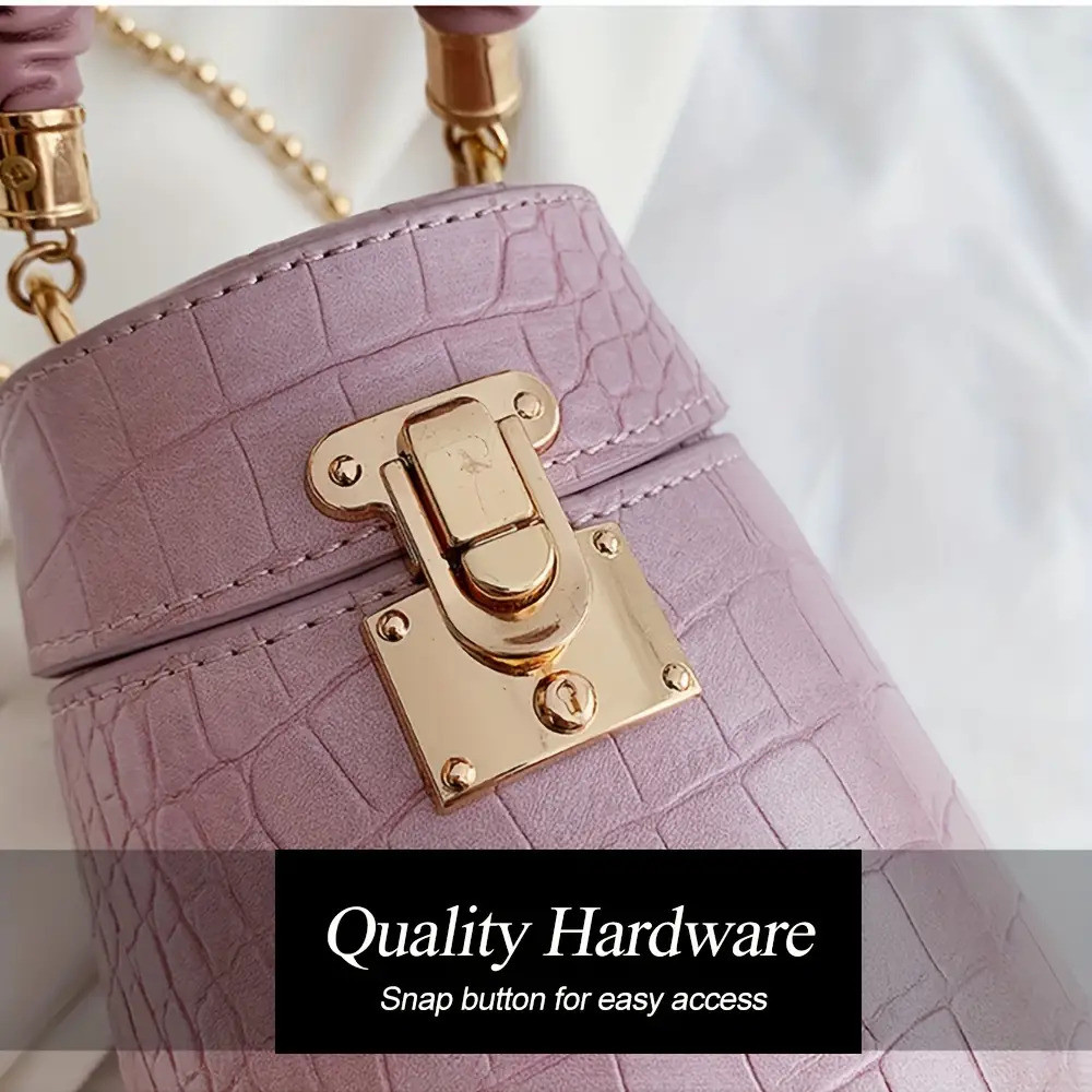 Mini Bucket Bag Elegant Style PU Leather Handbag Round Bag With Scrunched Handle & Twist-Lock