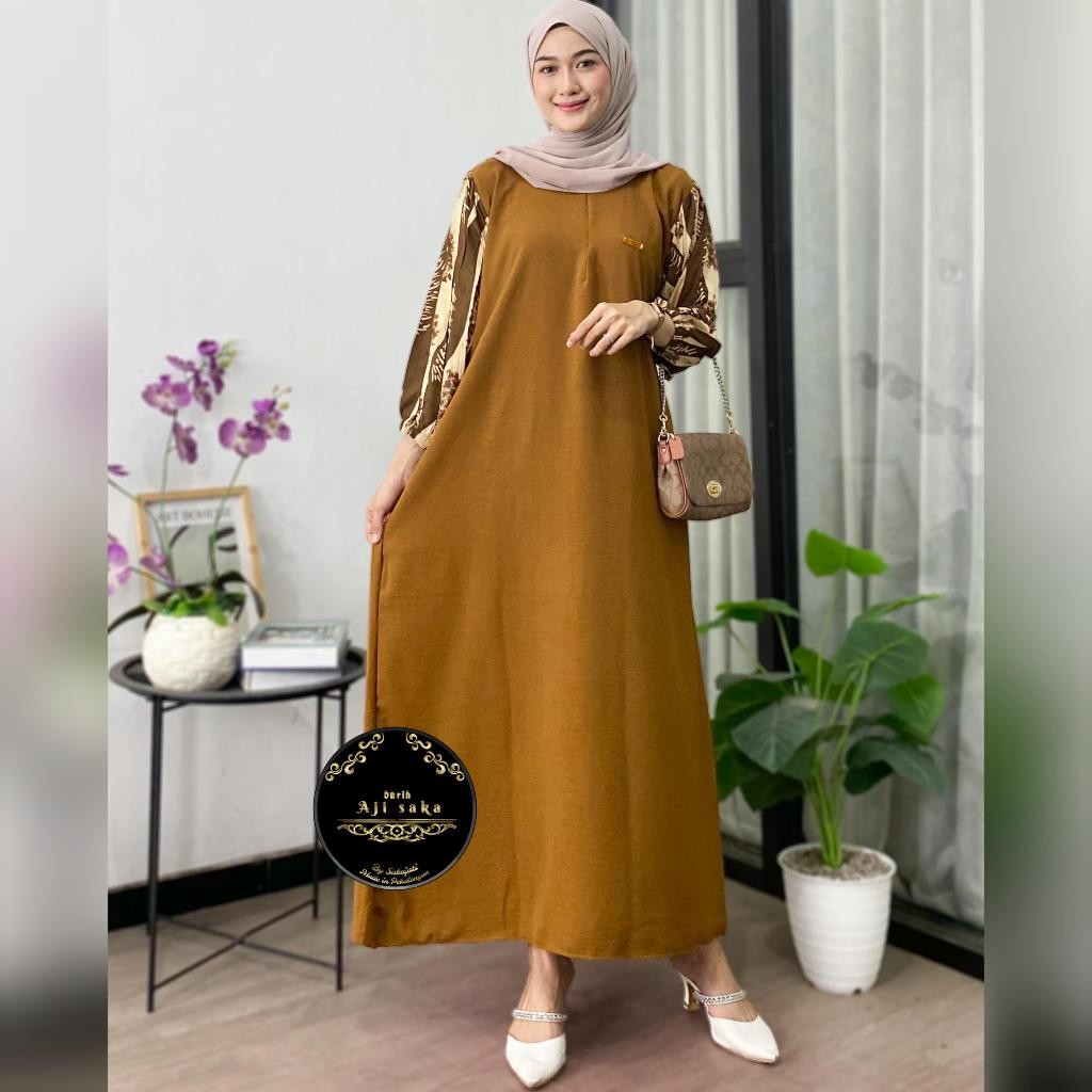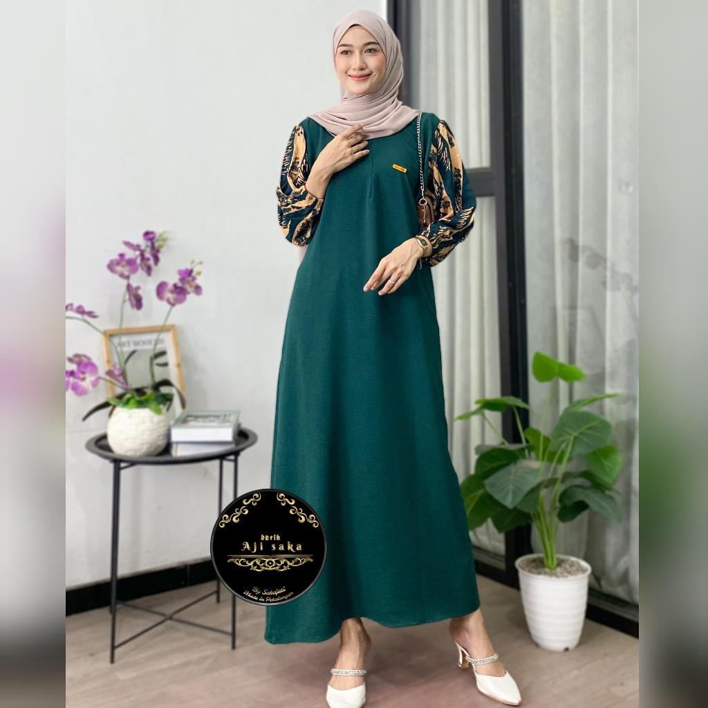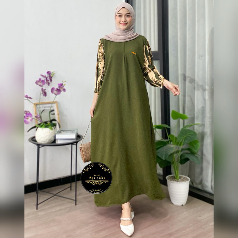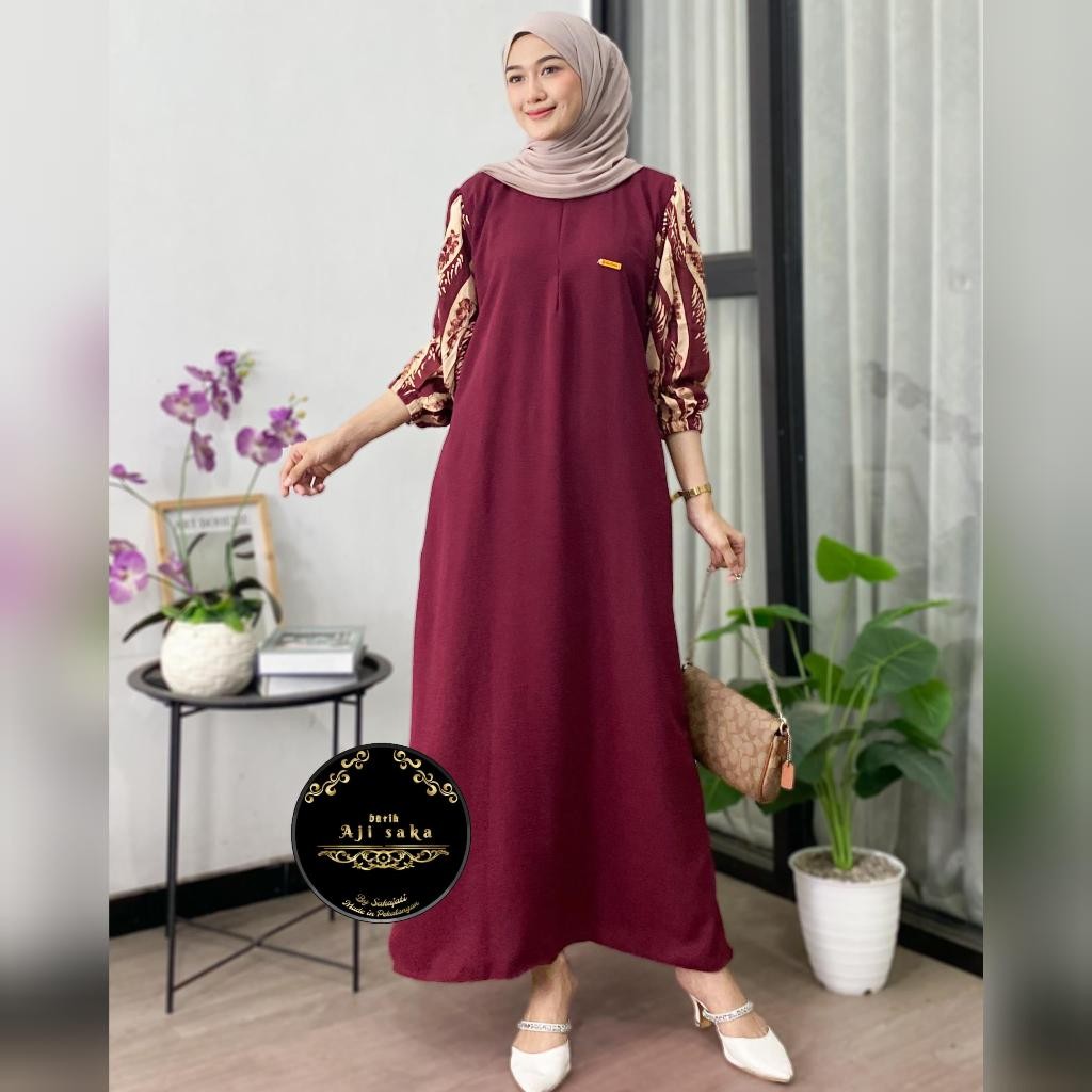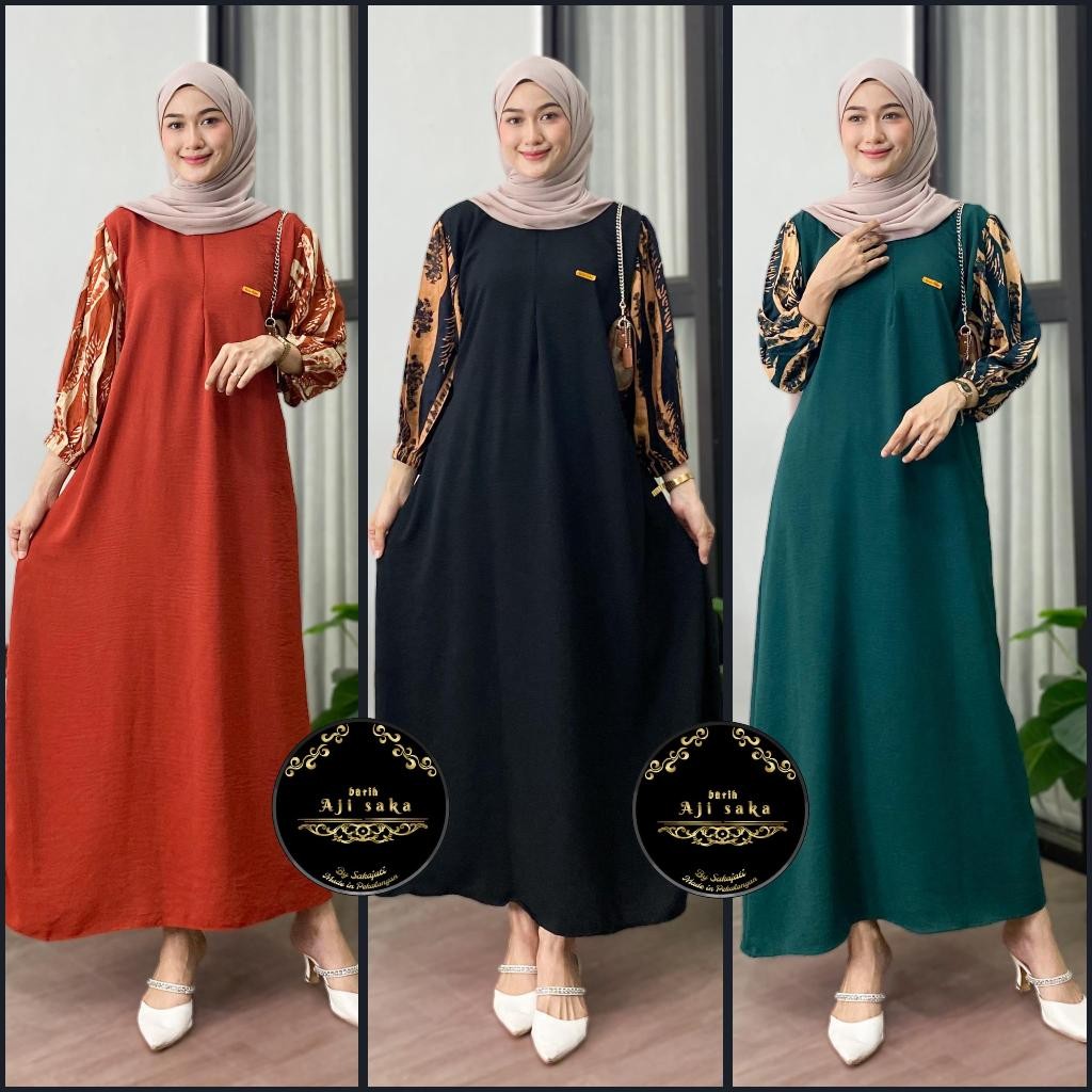 Aisyah Dress Gamis Cringkle Airflow Combination Ld 120 Pb 130 Front Zipper Busui friendly
