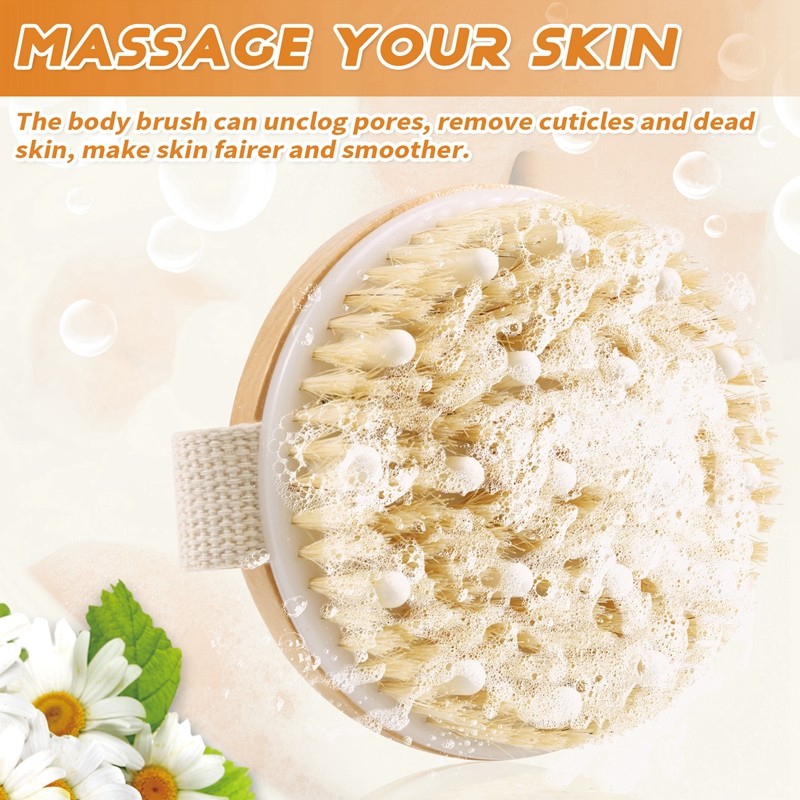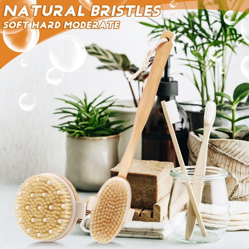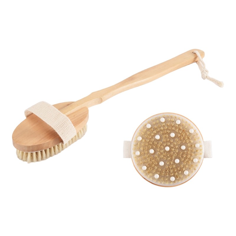 Dry Brushing Body Brush Set of 2, Dry Skin Exfoliating Brush, Handle Back Scrubber for Shower, Dry Brush for Cellulite