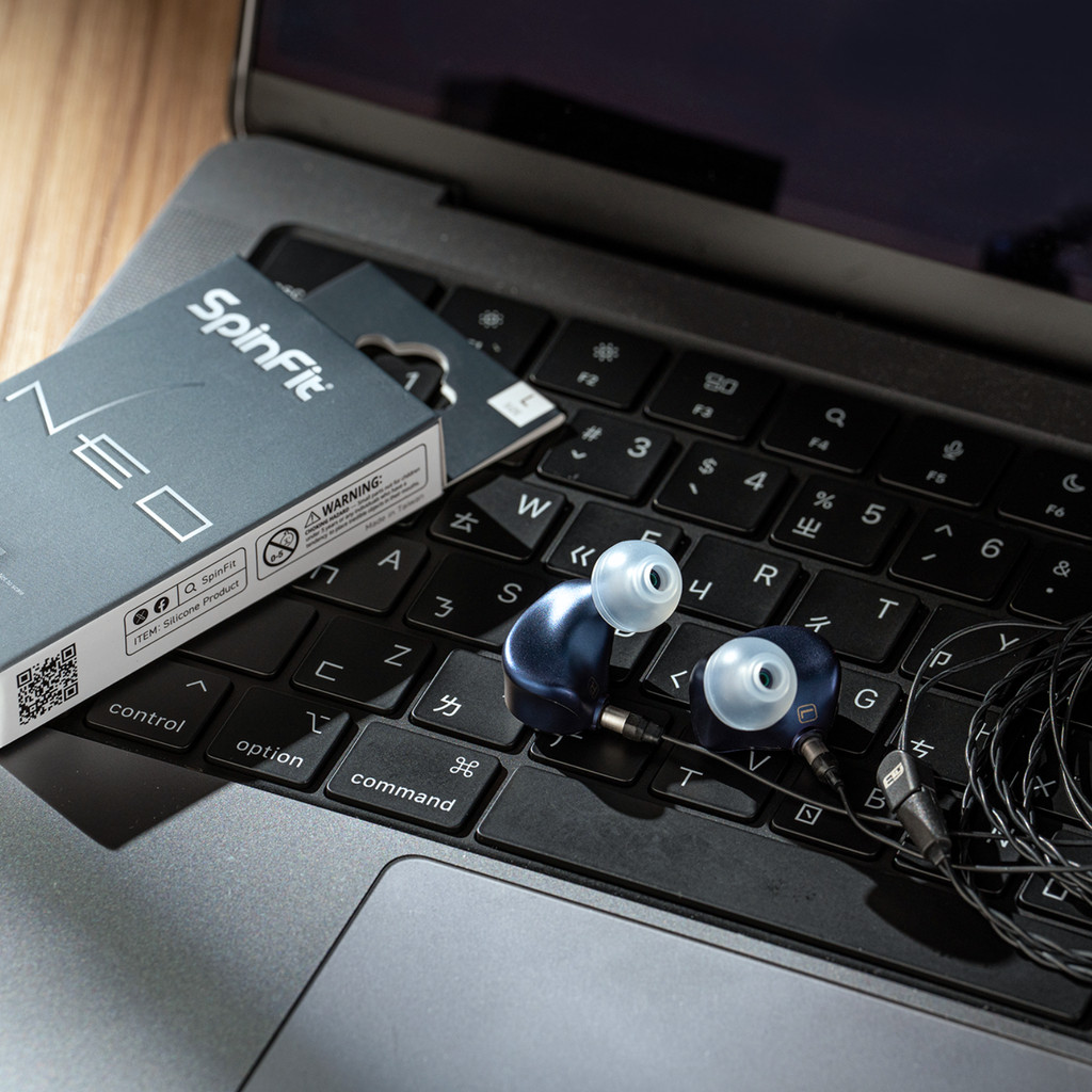 SpinFit NEO for IEM Silicone Patented Eartips Secure Fit Comfort Reduce Allergic Reaction with Adapters for Slim Nozzles 1Pair