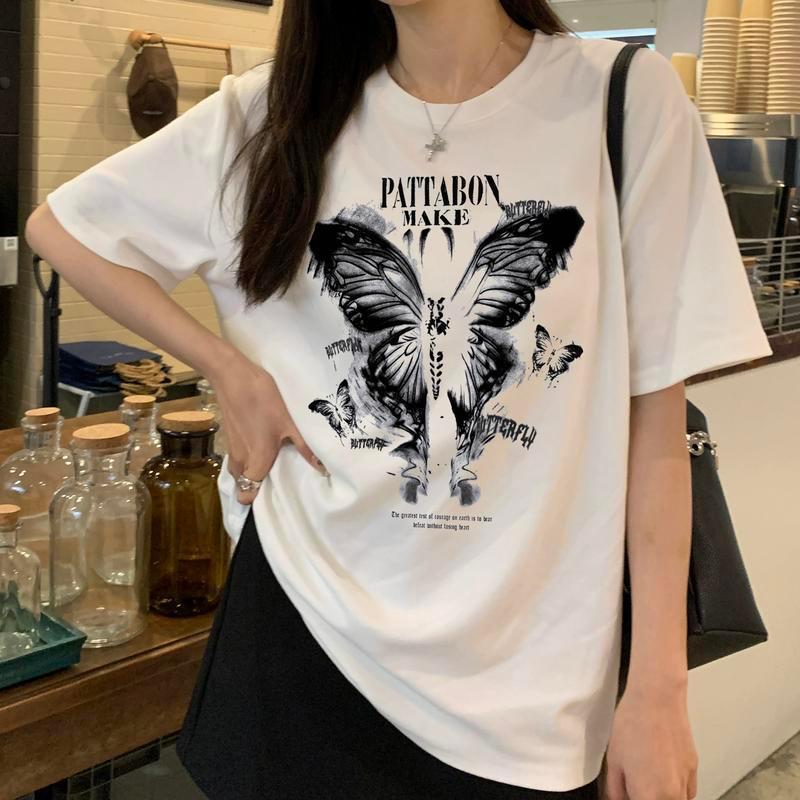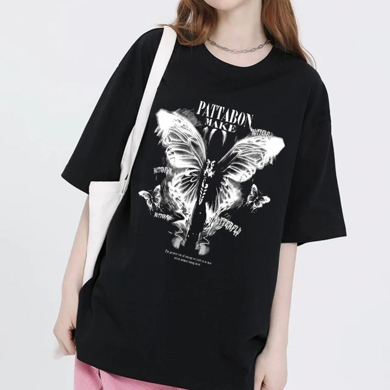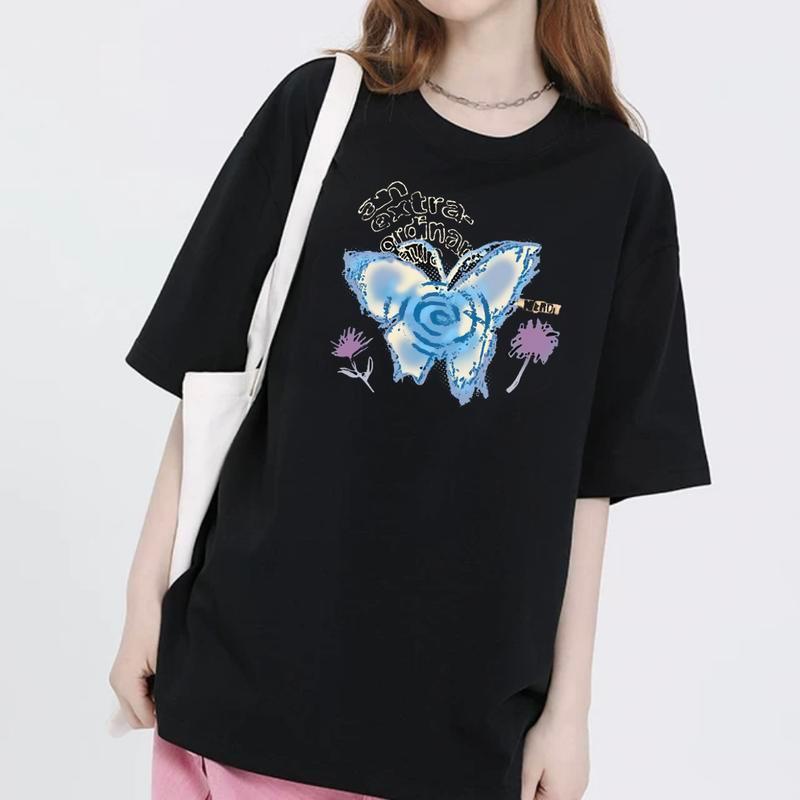 Butterfly T-shirt For Women Oversize Basic Round Neck Womenswear Tops