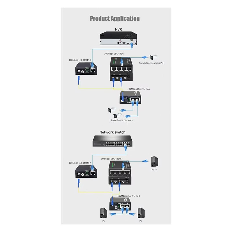 NEW Fiber Transceiver 2 SC Port 4 RJ45 Port Gigabit Fiber Switch 10/100/1000M Media Converter Fiber