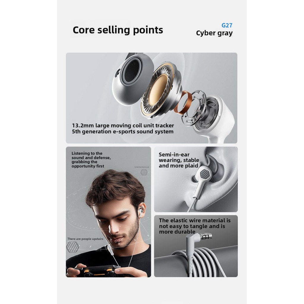 Pu Ji G27Gaming Headset Cyberpunk E-Sports PUBG In-Ear Headphones Universal Headset for Mobile Phones and Tablets