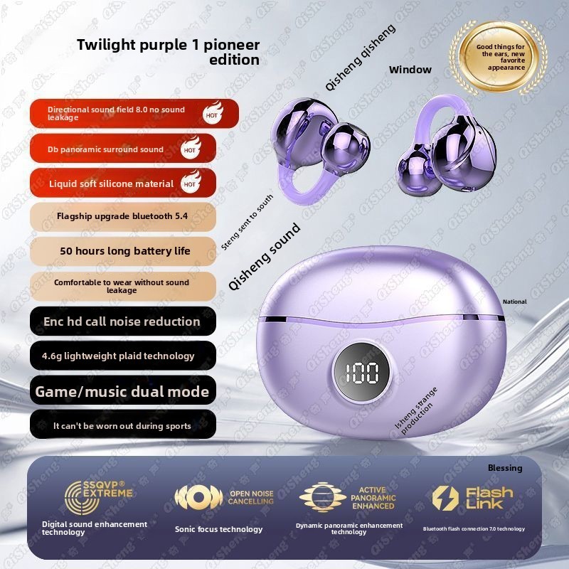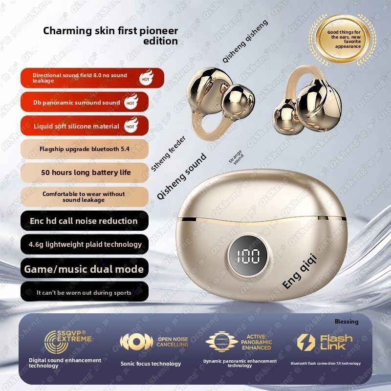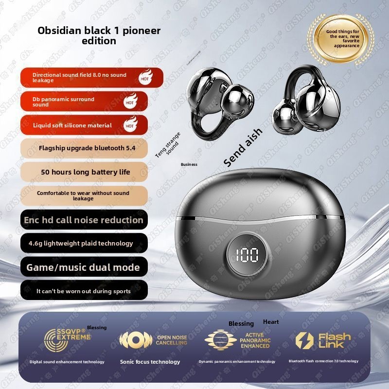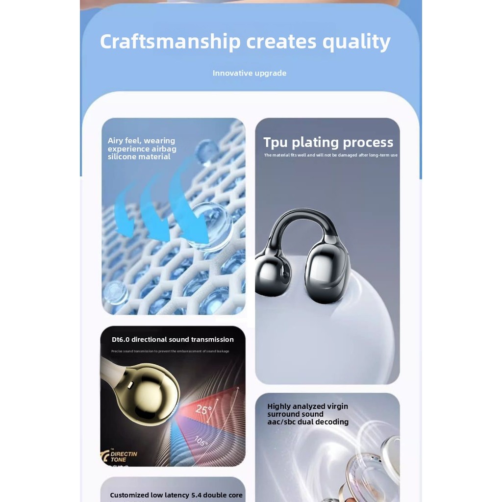 Smart Bluetooth Headset Ear Clip-On Open True Wireless Not In-Ear Sports Running Suitable for Apple Huawei Xiaomi