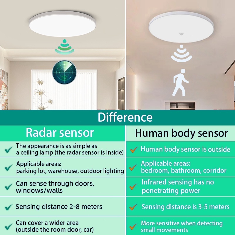LED Motion Sensor Ceiling Light Auto-On/Off Energy Saving 12/15/18/20/30W/40W Smart Lamp for Home Garage Staircase Lights Corridor Hallway Lighting