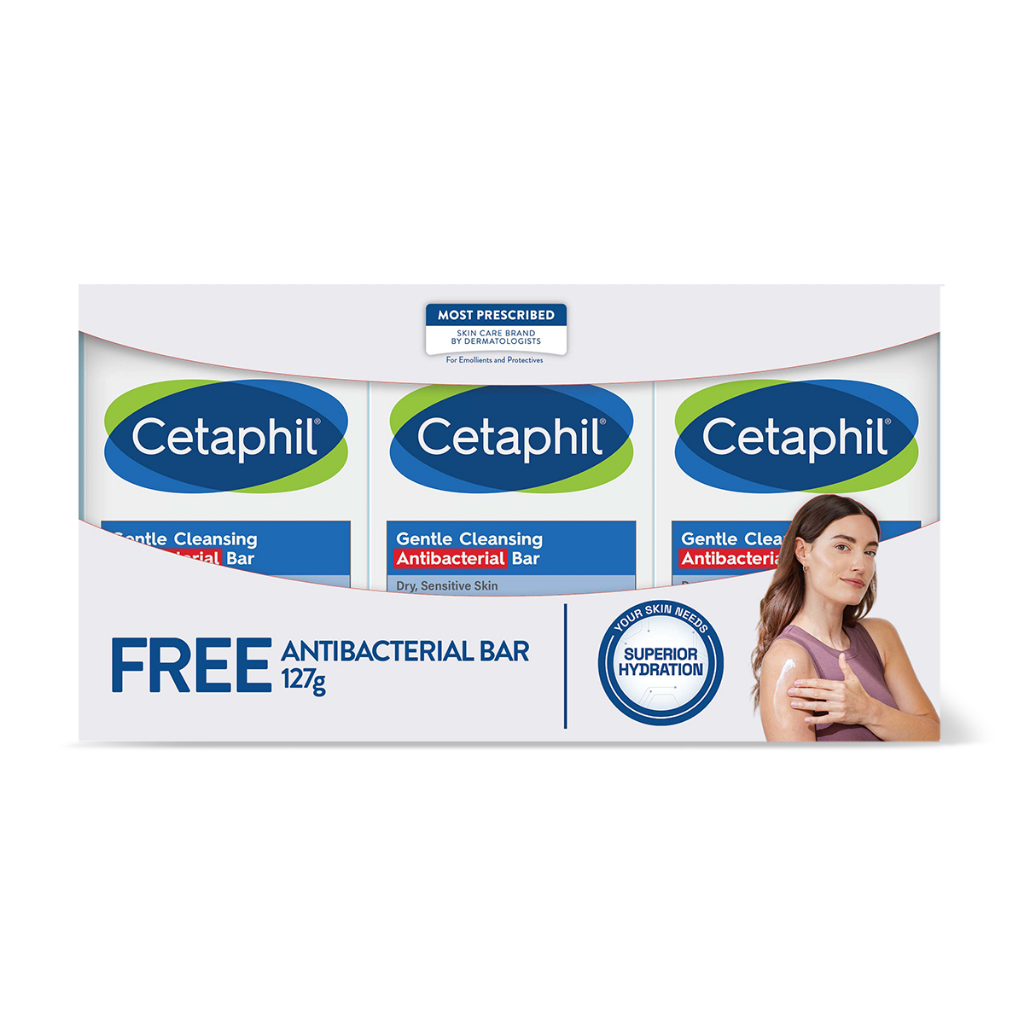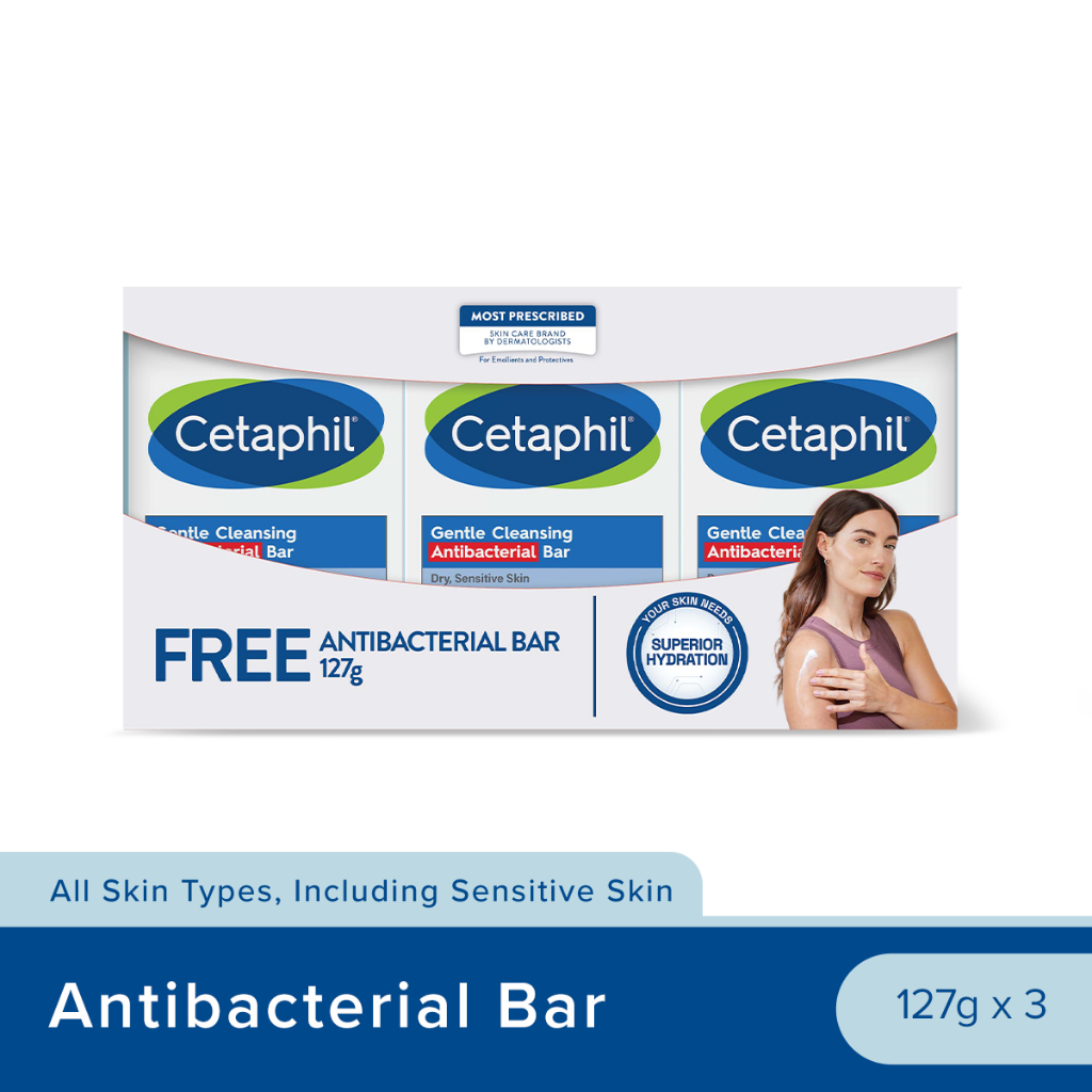 Cetaphil Antibacterial Bar - 127g - Bundle of 3 | Cleansing / Hypoallergenic