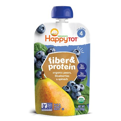 Happy Tot Organic Stage 4 Fiber and Protein Pears Blueberries and Spinach