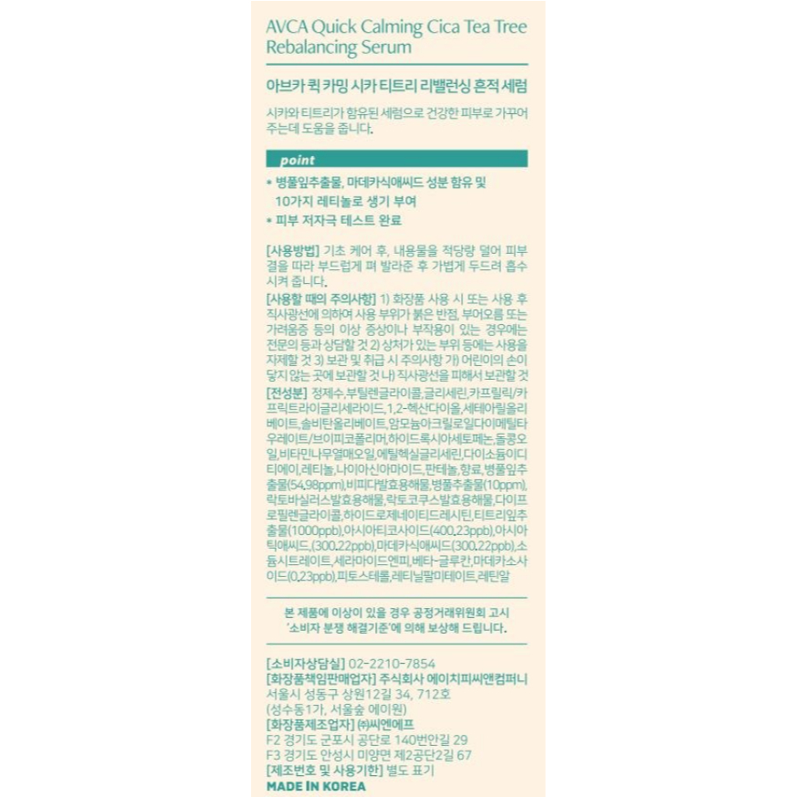 AVCA QUICK CALMING CICA TEA TREE REBALANCING SERUM 100ML