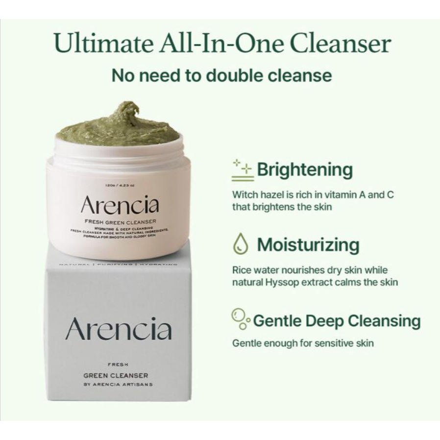 Arencia Fresh Green Rice Mochi Cleanser 120g Set + Rosehip Cleanser 15g | Gentle Pore Care & Exfoliation | All Skin Types