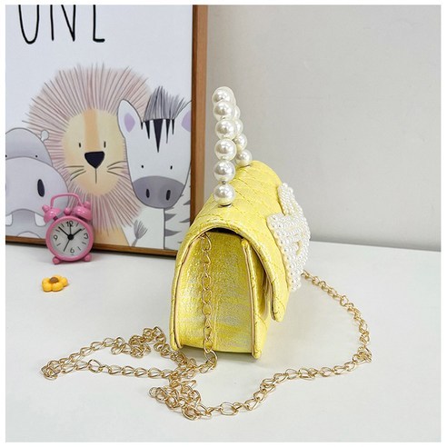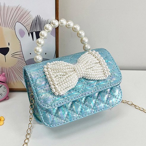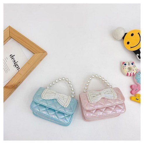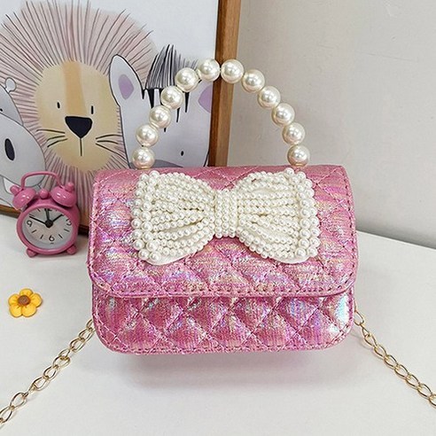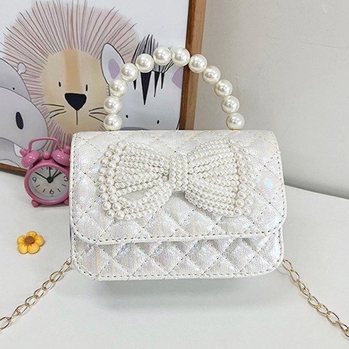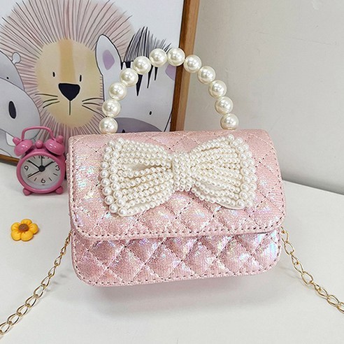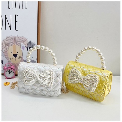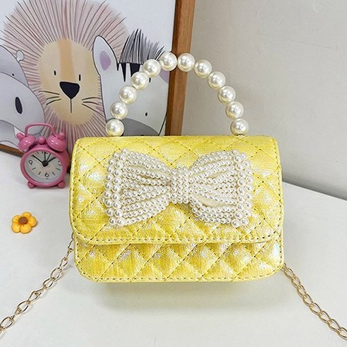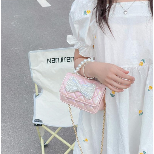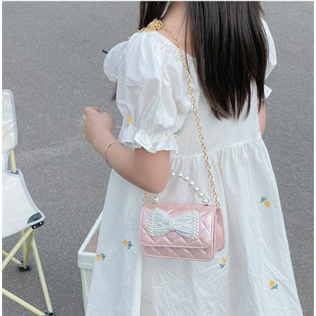Girls Lovely Pearl Ribbon Bag – White / Light Pink / Pink / Yellow / Blue – Kids Shoulder & Handbag