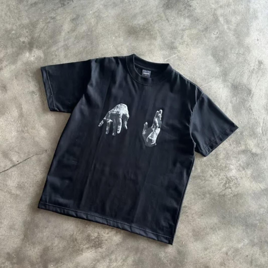Palm print trendy short-sleeved versatile loose 100% cotton T-shirt men's and women's large