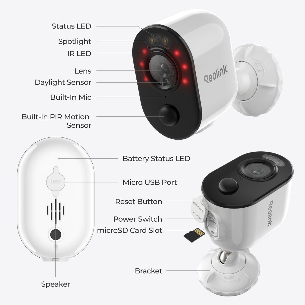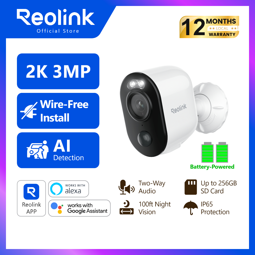 Reolink Argus 3E 2K 3MP Outdoor Battery-Powered WiFi Security Camera IP65 HD Spotlight Night Vision