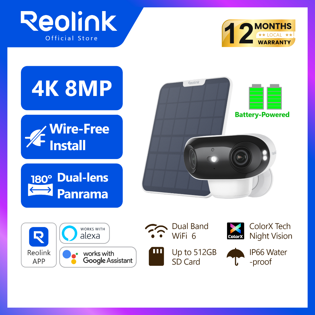 Reolink Argus 4 Pro 4K 8MP Dual Lens Solar-Powered KIT Security Camera IP66 Colorx PIR Night Vision