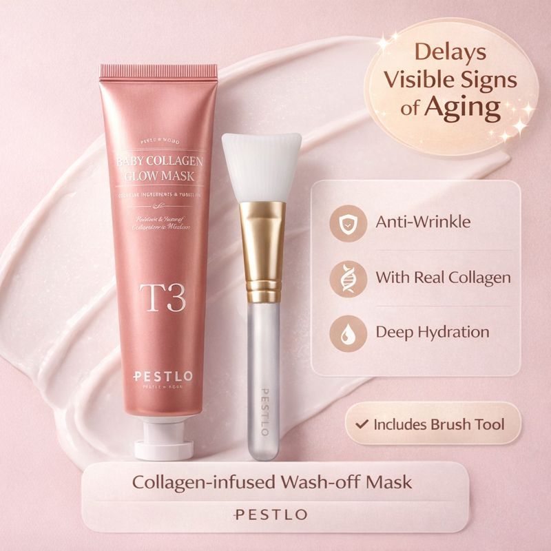 PESTLO T3 BABY COLLAGEN GLOW MASK 50ML PLANNING SET WITH JELLY BRUSH, RADIANCE & ELASTICITY CARE MASK
