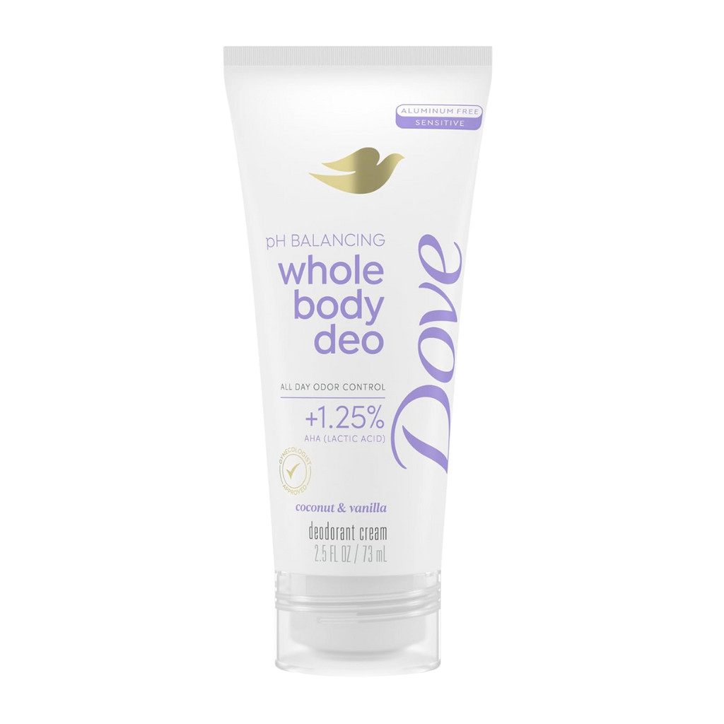Dove Whole Body Deo Invisible Cream for Odor Ontrol Coconut & Vanilla, (73 ml / 2.5 oz)