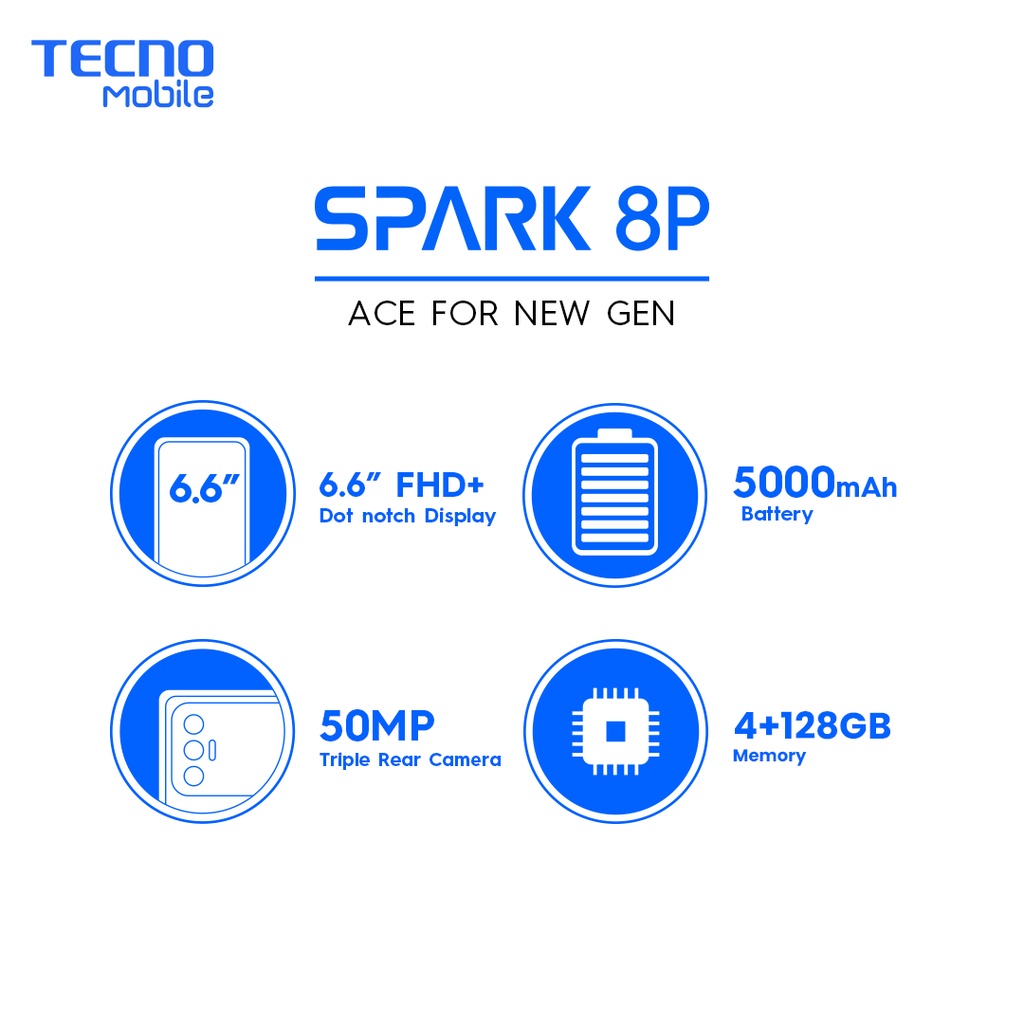 Tecno Spark 8P Model Kg7 Helio G70 4Gb Ram+128 Rom