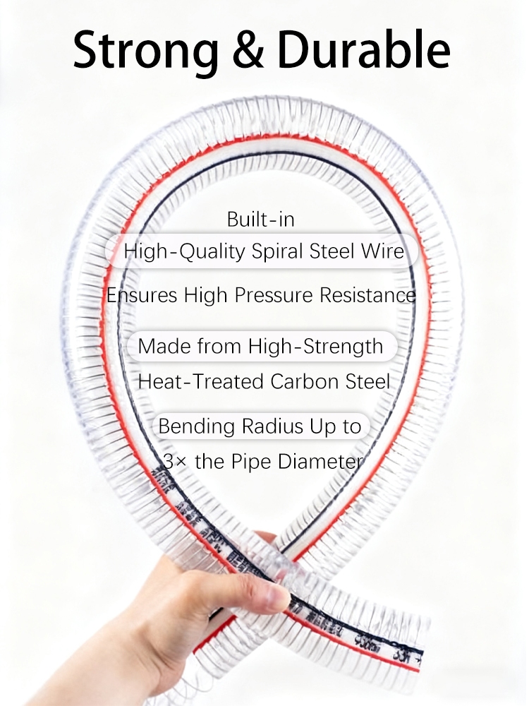 REAIM Steel Wire Hose PVC Tube Flexible Transparent Heavy Duty High Pressure Suction Pipe 2Inch