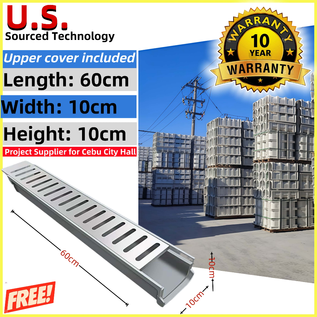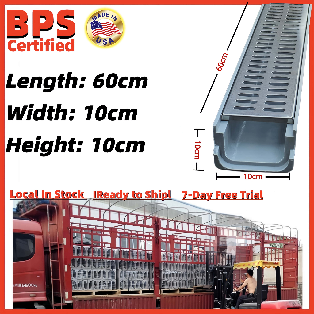 Heavy Duty U-Shape Resin Drain Channel with Free Stainless Steel Cover | for Driveway Garden Yard