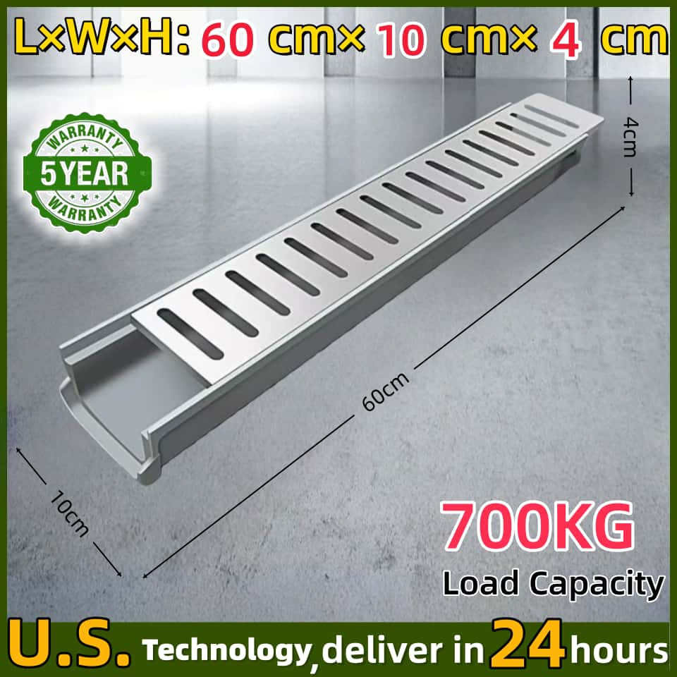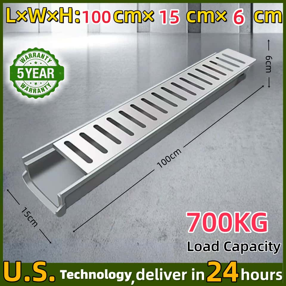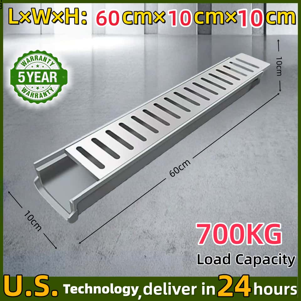 U-Shape Drainage Gutter Kit with Grating | Prefabricated Resin Sewer for Rainwater Outdoor