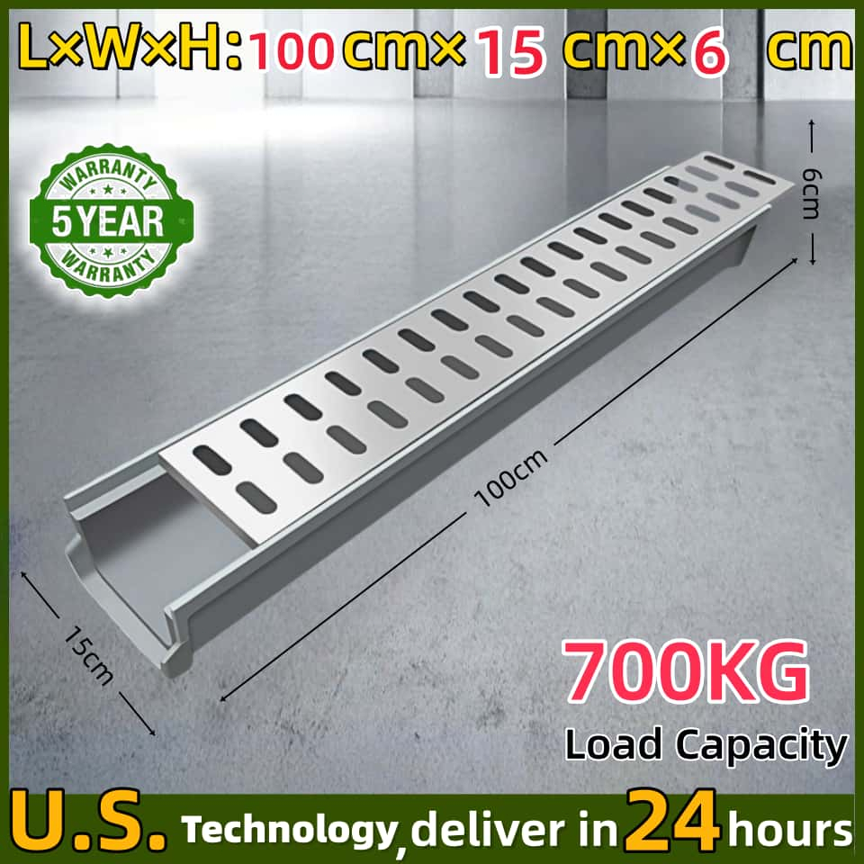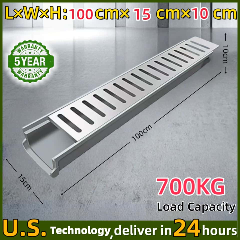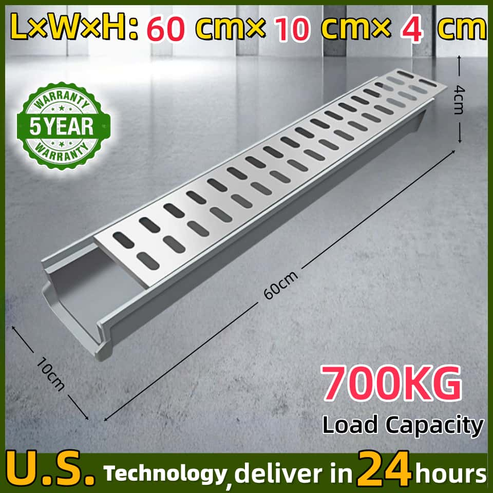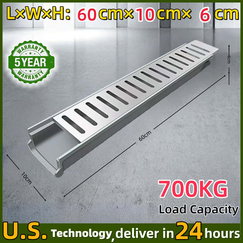 U-Shape Drainage Gutter Kit with Grating | Prefabricated Resin Sewer for Rainwater Outdoor