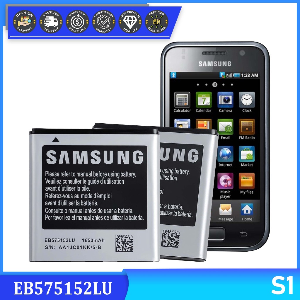 Replacement Battery for Samsung Galaxy S1 Model: EB575152VU/EB575152LU (1650mAh) Fit, I9000, I589,