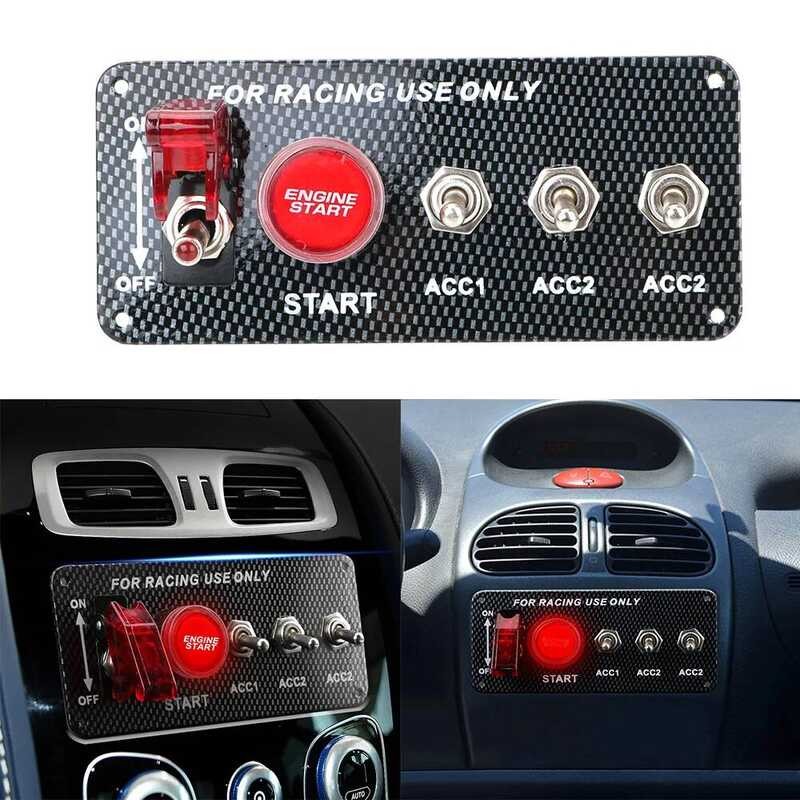 LED 3 7 Toggle Switch Car Accessories Carbon Fiber 12V Ignition Panel For Racing Engine