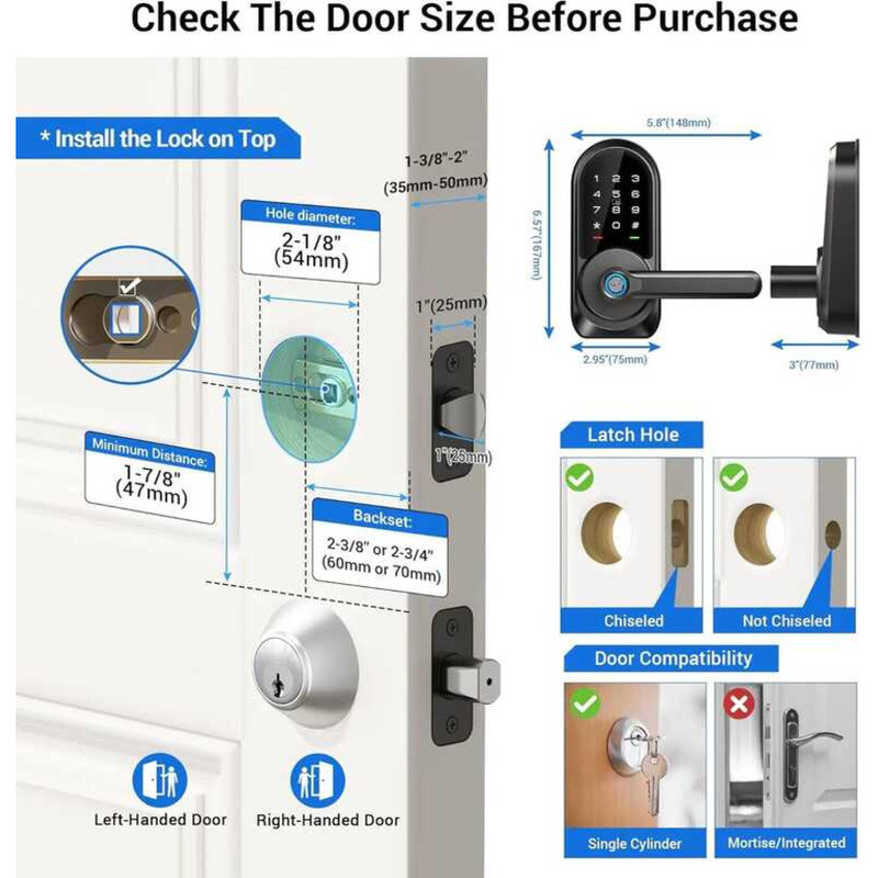 0 Veise 3 Rz09 Smart Lock, 7-In-1 Keyless Entry With Handle Set, APP Control Fingerprint Deadbolt Fo