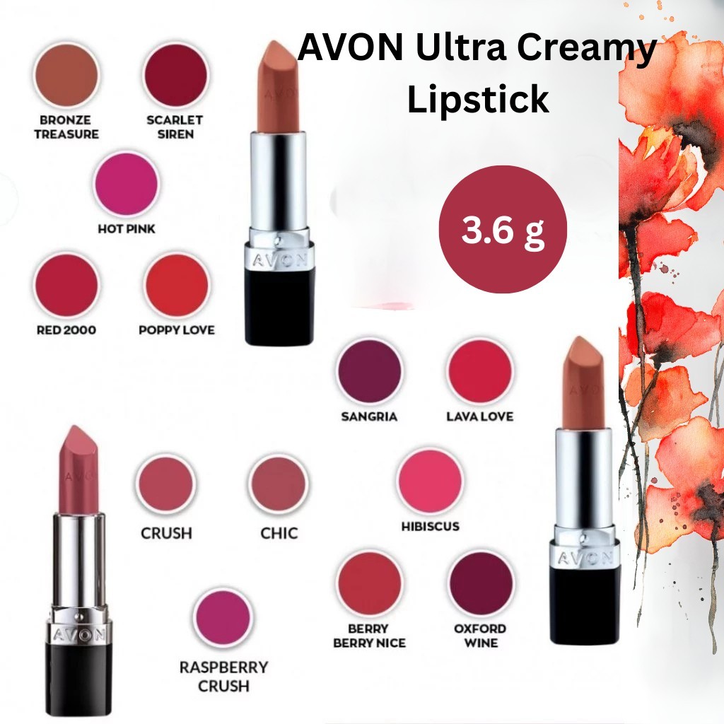 AVON Ultra Creamy Lipstick 3.6g Rich Color, Moisturizing Formula, Smooth Glide, Long-Lasting Shine