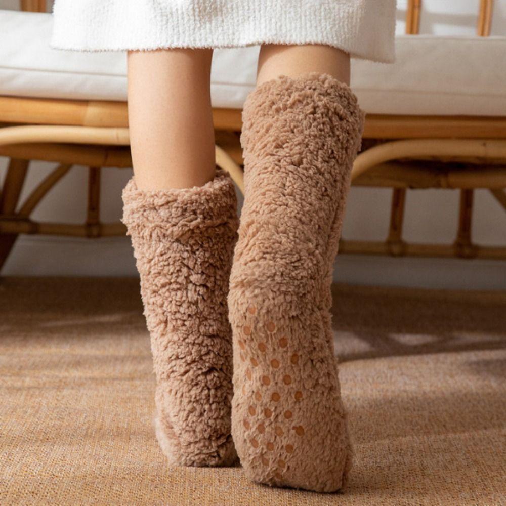 DUOJU Medyas na Panglamig, Makapal na Socks na Cotton para sa Babae, Home Slipper na Anti-Slip at Mainit-init