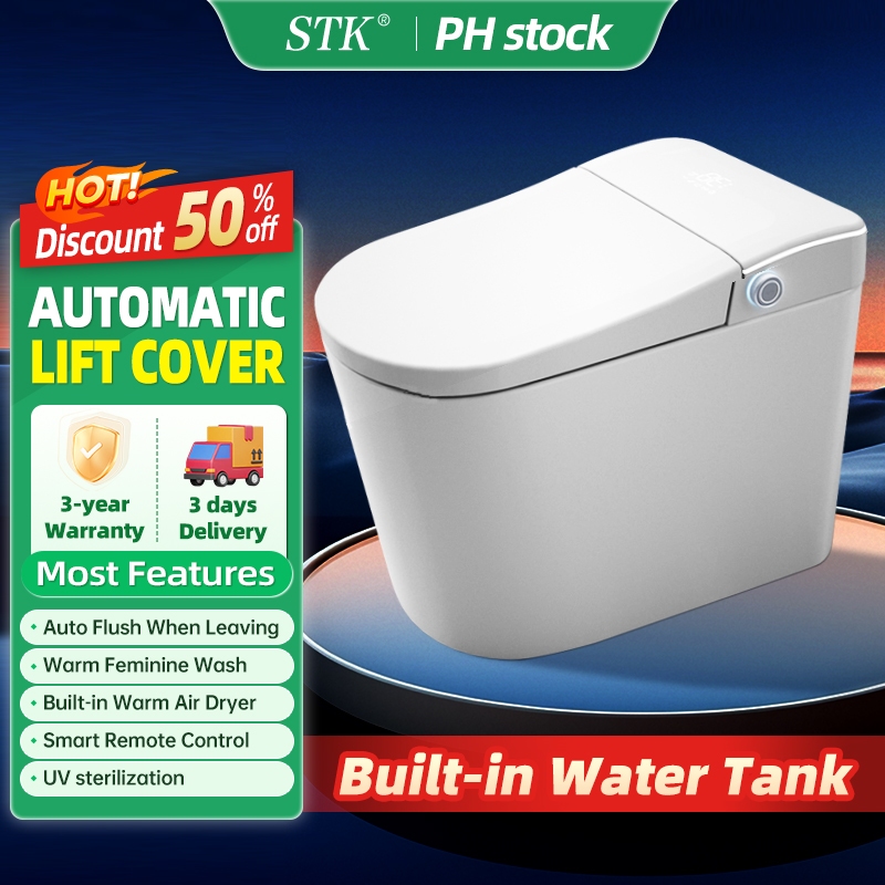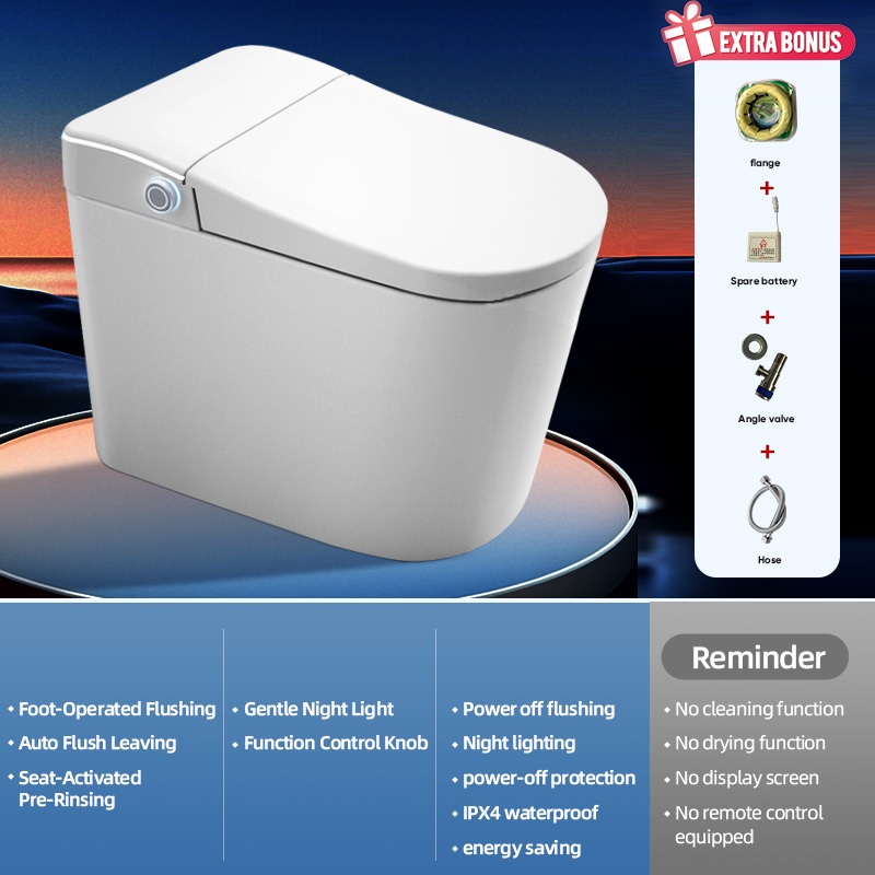 Smart Toilet With Tank No Pressure Limit Heated Seat Bidet Automatic Flush LED Display Waterproof