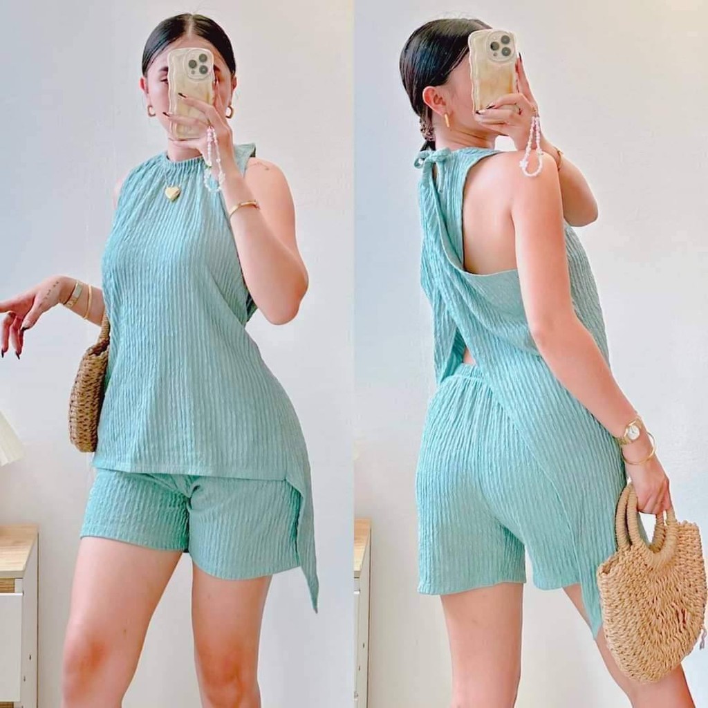 HM- Natalia Casual Coords Halter sexyback Top & Short Terno Small-Meduim frame |Bark crepe // MJ