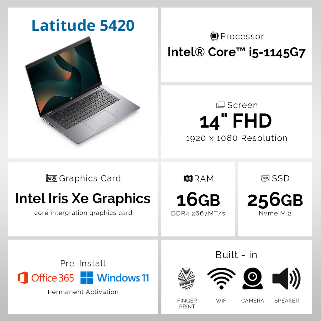 Dell'v)Latitude,ac(5420 14 FHD (1920x1080), Intel Core i5-1145G7 16 GB DDR4 RAM,%K:256/512GB/1TB:mC