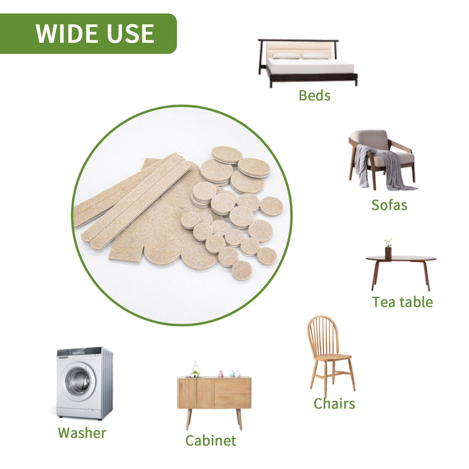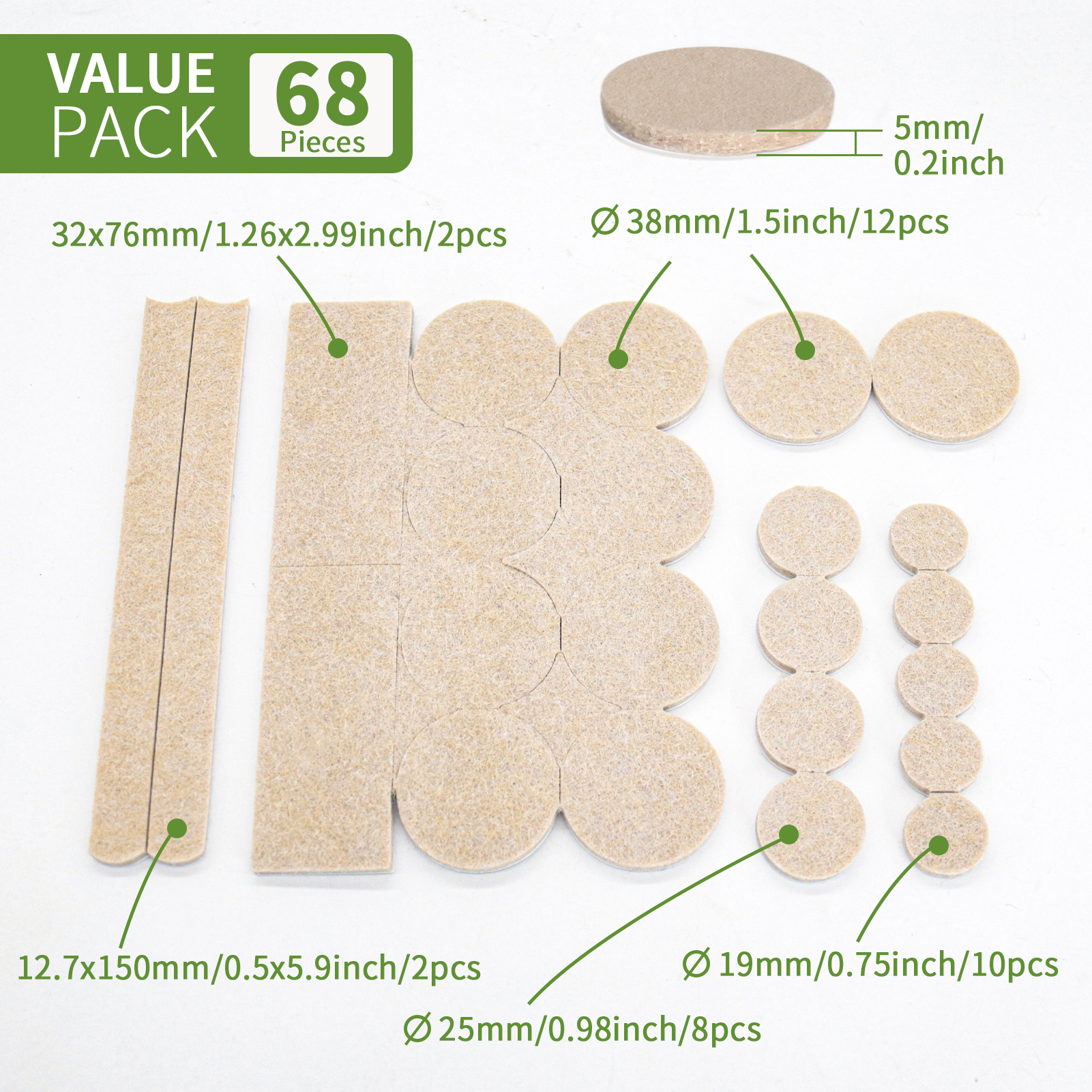 36-piece combination felt pads, thickened 5mm, self-adhesive floor scratch pads, silent and non-slip DIY home furniture foot pads, shock-absorbing felt pads.