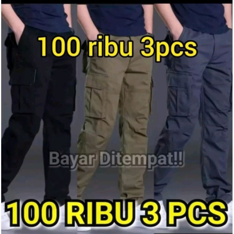 Checkout directly 100 THOUSAND GET 3 PCS LONG CARGO PANTS FOR ADULT MEN LONG PANTS Cargo Pants For Men