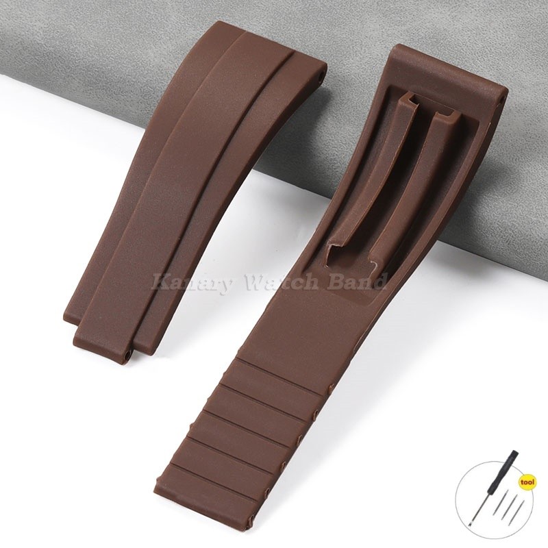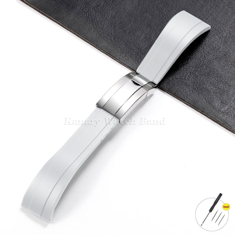 20mm Flat Silicone Watch Strap for Rolex Water Ghost Daytona GMT Waterproof Sport Rubber Watch Band Folding Buckle Bracelet Men Women Diving Wristbelt