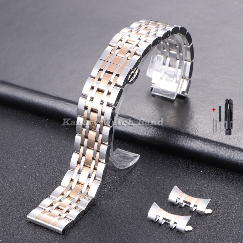 12/14/16/18/19/20/21/22/24mm Solid Stainless Steel Classic Seven Beads Watch Band Universal Flat Curved End Metal Bracelet with Butterfly Buckle Men Women Watch Strap