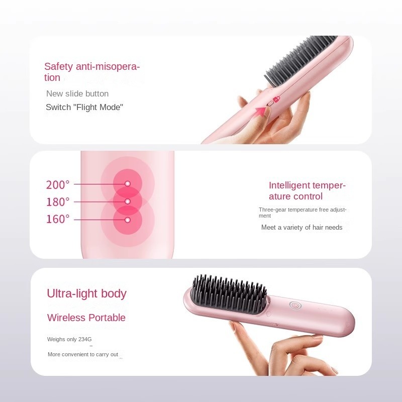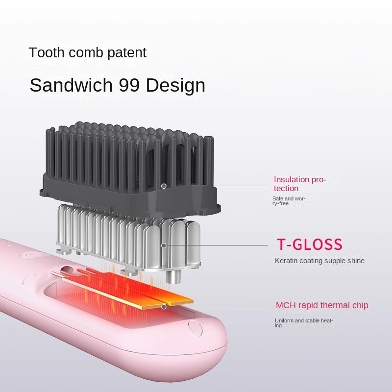 TYMO Lite handheld wireless negative ion anti scald temperature control styling hair care straight hair comb。