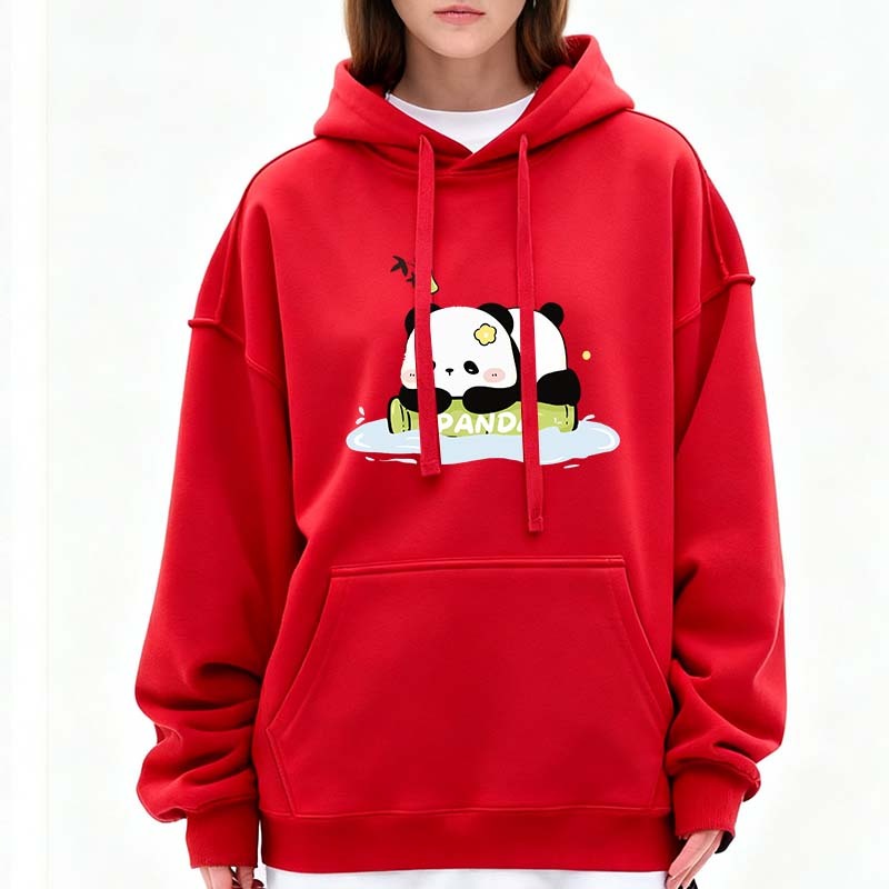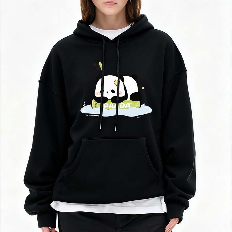 2026 new hooded sweatshirt cartoon panda print loose fitting pullover for couples