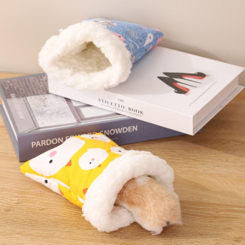 ORIENTTK Hamster Nest, Cartoon Pocket Type Kitten Quilt Bed, Creative Thickened Plush Winter Warm Pet Snuggle Sack Pet Supplies