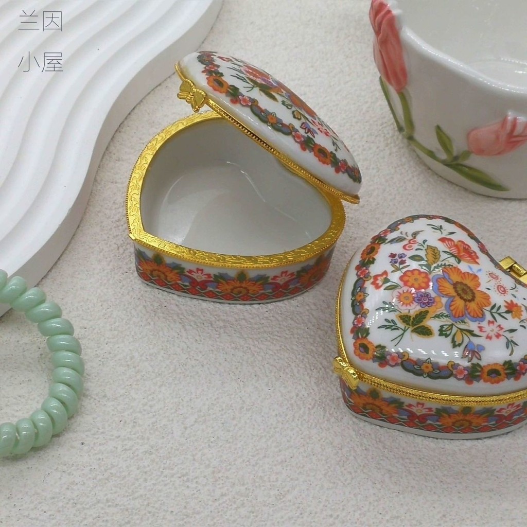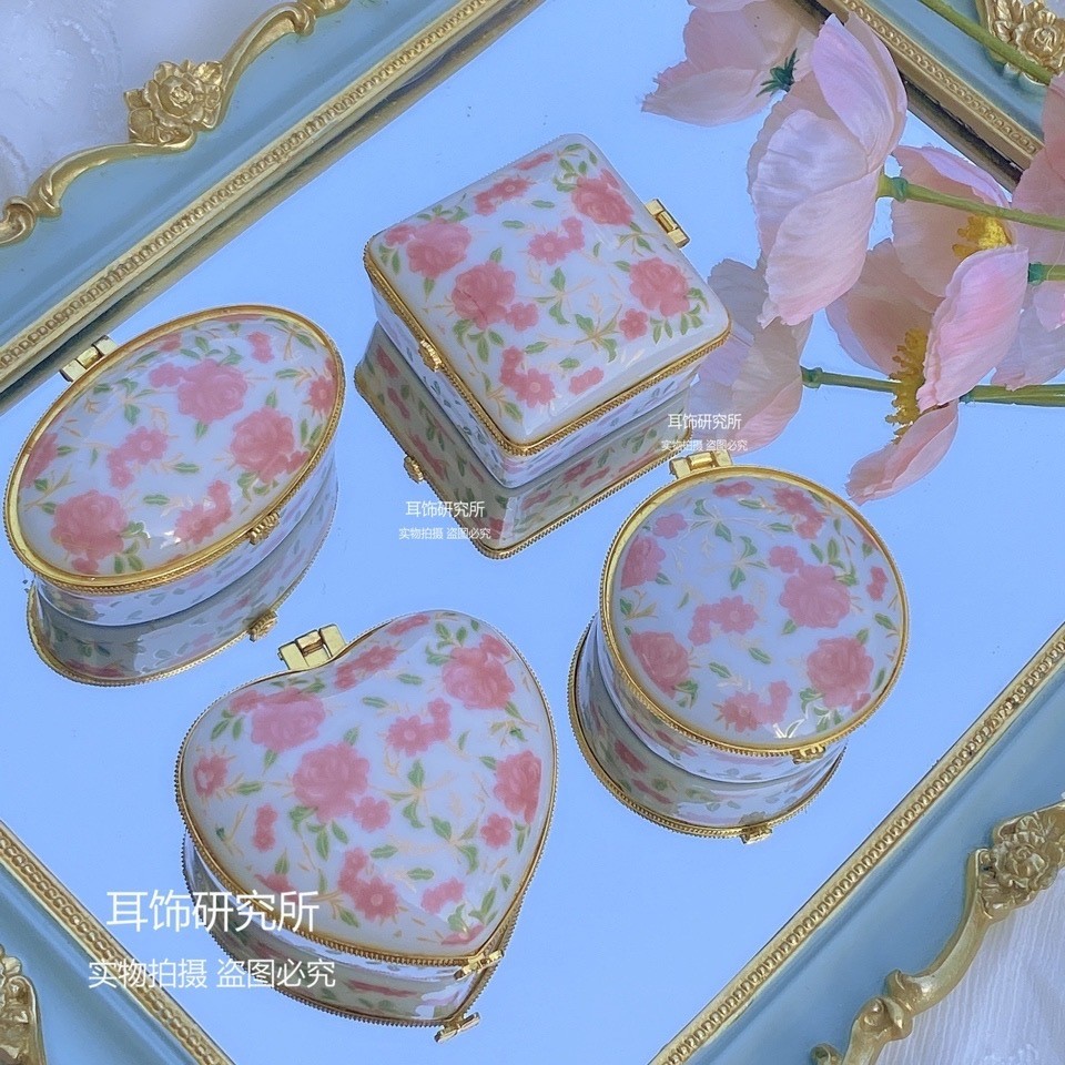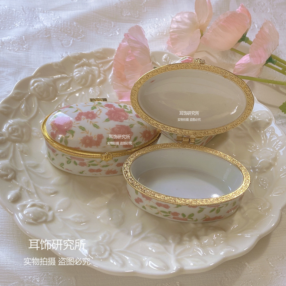 Retro Ceramic Jewelry Storage Box with Lid DABF